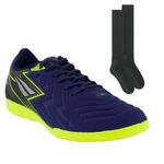 Descrição:Conquiste as quadras com a Chuteira Futsal Penalty Líder Y-4, desenvolvida pela Penalty, perfeita para os atletas demonstrarem suas habilidades com conforto e qualidade. O calçado possui cabedal em material sintético, design na cor marinho e solado de borracha antiderrapante. Palmilha em EVA, forrada e removível; facilita na higienização. Forro em material têxtil acolchoado. Lingueta fina e flexível. Ajuste por cadarço. Sendo indicada para futsal. Suas tecnologias Non-Marking: Uma borracha que não marca a superfície e proporciona excelente tração. HiperFlex: Canaletas posicionadas estrategicamente para auxílio na flexão e movimentação dos pés. O Meião Futebol é ideal para quer completar seu uniforme para suas partidas. Este meião foi produzido em um tecido especial de poliamida com poliéster e elastano, por isso, ele é perfeito para quem busca uma peça elástica e ao mesmo tempo extremamente leve e muito confortável. Seu design traz uma única cor, possibilitando assim, uma maior versatilidade ao montar seus uniformes. Medida Aproximada (cm): 39-43: 22x44x10 (Comprimento do Pé x Altura do Cano x Largura do Cano). Referência: 124274.6961