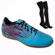 Descrição:A Chuteira Futsal Penalty Tornado Infantil é a escolha perfeita para os pequenos craques que desejam brilhar nas quadras de futebol de salão. Com um cabedal em material sintético durável e reforçado pelo sistema Micropower, essa chuteira proporciona resistência e suporte durante o jogo, garantindo que as crianças possam se movimentar com confiança. A tecnologia Hiper Flex assegura flexibilidade máxima, facilitando a execução de dribles e jogadas rápidas. O modelo conta com amarração por cadarço, palmilha em EVA macia para maior conforto e a parte interna do calcanhar forrada para um ajuste seguro e acolhedor. A lingueta flexível complementa o conforto, proporcionando um ajuste firme. Além disso, a entressola e o solado em borracha Non-Marking oferecem excelente tração, sem deixar marcas no piso, garantindo que os jovens atletas possam se mover com estabilidade e segurança. Com a Chuteira Futsal Penalty Tornado Infantil, seus pequenos estarão prontos para dominar as quadras com estilo e desempenho. Já o meião foi produzido em um tecido especial de poliamida com poliéster e elastano, por isso, ele é perfeito para quem busca uma peça elástica e ao mesmo tempo extremamente leve e muito confortável. Seu design todo liso na cor preta, possibilita assim, uma maior versatilidade ao montar seus uniformes. O tamanho do meião vai variar de acordo com a numeração da chuteira.