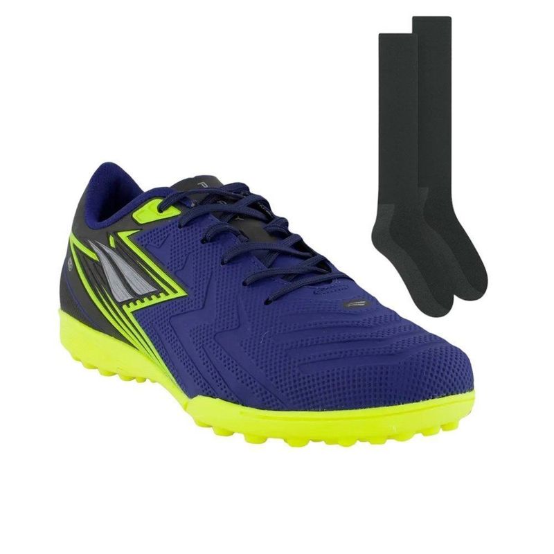 Descrição:Conquiste os gramados com a Chuteira Society Penalty Líder Y-4 Infantil, desenvolvida pela Penalty, perfeita para os atletas demonstrarem suas habilidades com conforto e qualidade. O calçado possui cabedal em material sintético, design na cor marinho e solado de borracha com micro travas fixas. Palmilha em EVA, forrada e removível; facilita na higienização. Forro em material têxtil acolchoado. Lingueta fina e flexível. Ajuste por cadarço. Sendo indicada para campo sintético. Sua tecnologia HiperFlex: Canaletas posicionadas estrategicamente para auxílio na flexão e movimentação dos pés. O Meião Futebol é ideal para quer completar seu uniforme para suas partidas. Este meião foi produzido em um tecido especial de poliamida com poliéster e elastano, por isso, ele é perfeito para quem busca uma peça elástica e ao mesmo tempo extremamente leve e muito confortável. Seu design traz uma única cor, possibilitando assim, uma maior versatilidade ao montar seus uniformes. Medida Aproximada (cm): 39-43: 22x44x10 (Comprimento do Pé x Altura do Cano x Largura do Cano). Referência: 242274.6961