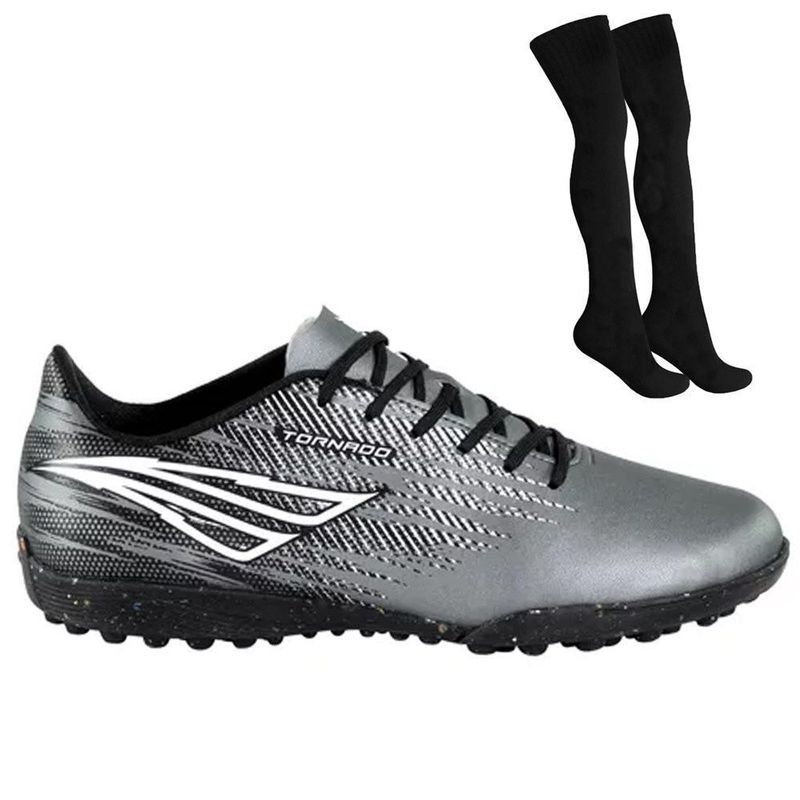 Descrição:A Chuteira Society Penalty Tornado Infantil é a escolha perfeita para os pequenos craques que desejam brilhar nos gramados artificiais . Com um cabedal em material sintético durável e reforçado pelo sistema Micropower, essa chuteira proporciona resistência e suporte durante o jogo, garantindo que as crianças possam se movimentar com confiança. A tecnologia Hiper Flex assegura flexibilidade máxima, facilitando a execução de dribles e jogadas rápidas. O modelo conta com amarração por cadarço, palmilha em EVA macia para maior conforto e a parte interna do calcanhar forrada para um ajuste seguro e acolhedor. A lingueta flexível complementa o conforto, proporcionando um ajuste firme. Além disso, a entressola e o solado em borracha contam com a tecnologia Hiper Flex assegurando flexibilidade máxima, facilitando a execução de dribles e jogadas rápidas. Com a Chuteira Society Penalty Tornado Infantil, seus pequenos estarão prontos para dominar os jogos com estilo e desempenho. Já o meião foi produzido em um tecido especial de poliamida com poliéster e elastano, por isso, ele é perfeito para quem busca uma peça elástica e ao mesmo tempo extremamente leve e muito confortável. Seu design todo liso na cor preta, possibilita assim, uma maior versatilidade ao montar seus uniformes. O tamanho do meião vai variar de acordo com a numeração da chuteira. TECNOLOGIAS: Hiper Flex: assegura flexibilidade máxima, facilitando a execução de dribles e jogadas rápidas. Micropower: Essa chuteira proporciona resistência e suporte durante o jogo, garantindo que as crianças possam se movimentar com confiança.