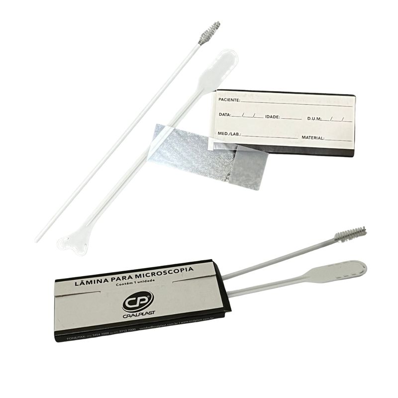 Kit citologia II – Cralplast Finalidade: Utilizado para a realização de procedimentos ginecológicos e na coleta de material para colpocitologia oncótica (teste de Papanicolau).Reúne de maneira simples e eficaz os materiais, em embalagem única, para possibilitar uma coleta segura e facilitar a rotina dos profissionais da área de saúde. Componentes:– 01 escova cervical + 01 espátula de Ayre (plástico ou madeira) + 01 porta-lâmina com 1 lâmina de vidro. Versões: – Não estéril (embalagem plástica).