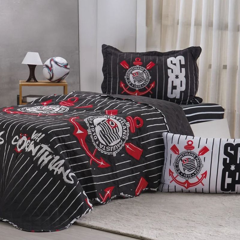 O KIT Cobre Leito Solteiro Times Licenciados Bene Casa é ideal para quem quer unir conforto e decoração com a paixão pelo futebol. Com estampa oficial licenciada, ele deixa o quarto mais bonito e com visual do seu time do coração, perfeito para torcedores de todas as idades.O tecido é macio e confortável para o dia a dia, com acabamento prensado para uso frequente.O kit acompanha 01 cobre leito solteiro e 01 porta travesseiro coordenados, entregando um conjunto completo e harmonioso na cama.Kit Cobre Leito KazzaVip Solteiro Microfibra Estampado 100% Poliéster Matelassê com Porta Travesseiro Time de Futebol Corinthians 02 Peças Preto Todas as informações divulgadas são de responsabilidade do fabricante/fornecedor.Marca: Bene CasaClassificação: SolteiroTecido: MicrofibraTecido Interno e Externo:100% PoliésterComposição (Fios): Enchimento:100% PoliésterConteúdo e Medidas: Kit Cobre Leito Matelasse Prensando Sem Costura Licenciado - Corinthians - 02 Peças01 Cobre Leito Estampado Matelasse Prensado(1,60m x 2,20m)01 Porta Travesseiros Estampado(0,50cm x 0,70cm)Cuidados com a Peça- Evitar produtos à base de Cloro- Evitar Secadora- Lavar separadamente de outros tipos de tecidosColeção / Sortimento: Linha FutebolDupla Face - Decorativo e confortávelProduto Importado e Distribuído por Bene CasaEstampado: SimCor: PretoFabricante: ChinaReferencia: 15.07.0172.9000Código de Barras: 7909782084815Garantia(Fabricante): Contra Defeito de FabricaçãoImagens Meramente IlustrativasINFORMAÇÕES IMPORTANTES: Item composto apenas por 01 Cobre Leito e 01 Porta Travesseiro, os demais itens são meramente decorativos e NÃO fazem parte do conteúdo da embalagem.Aviso : - Todas as medidas são valores aproximados e podem sofrer alguma variação.- As cores podem sofrer uma pequena variação, dependendo do lote do produto e das configurações do seu computador