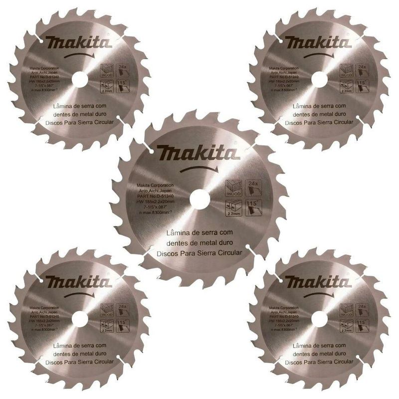 Kit Com 05 Discos De Serra Circular Para Madeira 7.1/4 185mmx2.2mm 24 Dentes Makita D-51340 únicoKit com 05 Discos de Serra Circular para Madeira 7.1/4 185mmx2.2mm 24 Dentes Makita D-51340 Único -Características Gerais do Produto: - Modelo: D-51340 - Marca: Makita - Diâmetro: 185 mm; Furo: 20 mm - Características: Dentes de metal duro; Anel de redução: 15.88; Dentes: 24 - Ideal Para: Corte em madeira em geral - Garantia direto com o Fabricante: 3 Meses Contra Defeitos de Fabricação Garantia: - Sem Garantia