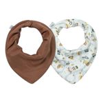 O Kit de Babadores Bandana Hug é perfeito para o bebê usar quando seus dentinhos estão nascendo, pois há salivação em excesso, e o babador cuidará da roupinha do bebê, mantendo-a sequinha. Também é indispensável na hora da comidinha, pois mantém a roupa do bebê limpinha e protegida dos alimentos. Além de servir como um ótimo acessório de moda para compor looks! DIFERENCIAIS Nossas malhas 100% algodão passam por rigorosos processos de qualidade. Selecionamos fios de algodão com fibras longas e de altíssima qualidade, proporcionando um toque suave e duradouro em nossos suedines. Nossas tecelagens utilizam teares modernos que transformam os melhores fios em malhas estáveis, duradouras e confortáveis, com um nível ideal de gramatura, permitindo uma troca de temperatura natural e saudável entre a pele sensível do bebê e o ambiente. Nossas estampas digitais são produzidas com os métodos mais modernos do mundo, resultando em desenhos autorais com traços delicados e suaves. As tintas utilizadas possuem certificação OEKO-TEX® ECO PASSPORT e são à base de água, tornando o processo totalmente ecológico e seguro para a pele humana. Isso nos permite economizar até 95% dos recursos ambientais em comparação com outros métodos tradicionais da indústria têxtil. Estampa exclusiva Hug Fechamento em botão de pressão Dupla camada de suedine Material interno impermeável CARACTERÍSTICAS Gênero: Masculino Cor: Off White / Marrom Comp. Externo: Suedine 100% Algodão Medida: Comp. 27 cm x Larg. 20 cm