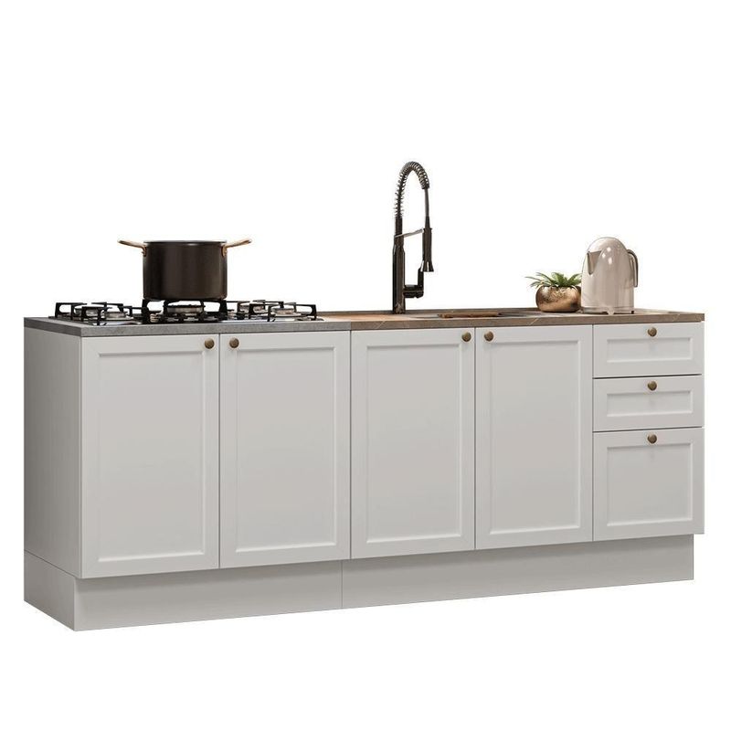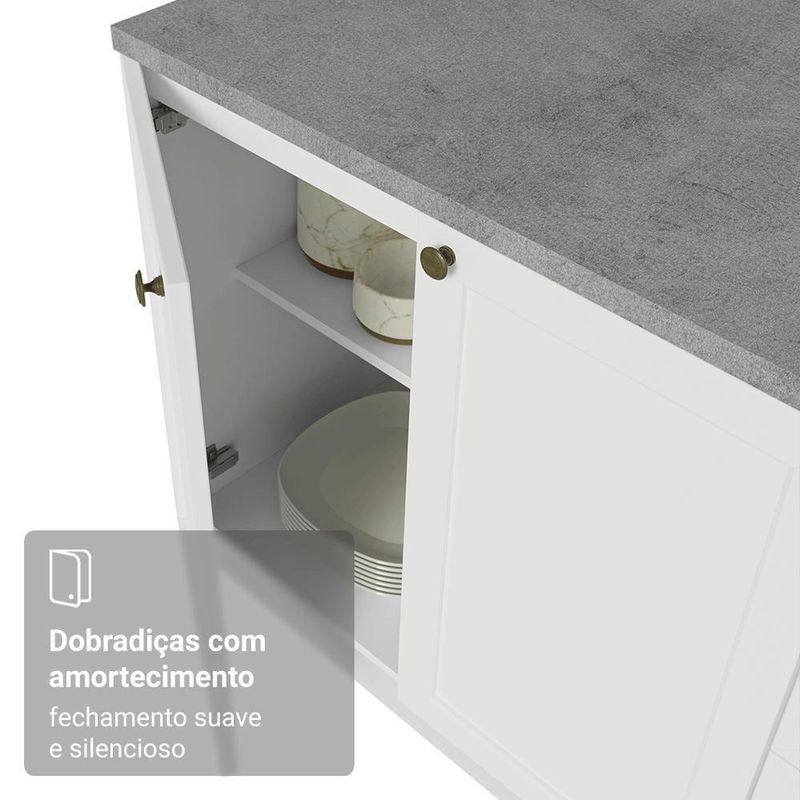 Kit Com 2 Balcões De Cozinha 3 Gavetas 4 Portas (sem Tampo E Pia) Branco Vik Madesa 01 BrancoO Kit com dois Balcões de Cozinha da Linha Vik da Madesa é a escolha ideal para quem deseja trazer para sua cozinha o charme do estilo americano. Cada detalhe foi pensado para criar um ambiente elegante e atemporal, transformando sua cozinha em um espaço acolhedor e elegante.Além de trazer elegância, a linha Vik é funcional em cada detalhe. As portas possuem dobradiças com amortecimento, garantindo um fechamento suave e silencioso, enquanto as gavetas com corrediças telescópicas permitem abertura total, para você organizar tudo que precisa com muito mais facilidade.Com acabamento branco de alta resistência e textura suave ao toque, trazendo leveza e sofisticação ao ambiente. O destaque fica por conta dos puxadores ponto em ouro envelhecido, feitos com metal resistente, trazem personalidade e um charme único.A cozinha modulada permite que as peças sejam organizadas conforme a necessidade do seu ambiente. O balcão de pia, permite a instalação de pia de inox ou pedra, enquanto o balcão de 80 cm pode ser instalado cooktop.Medidas totais:Altura: 84 cmLargura: 200 cmProfundidade: 52 cmO que você recebe:Um (1) Balcão de 80 cm com duas (2) portas e tampoUm (1) Balcão de 120 cm com duas (2) portas, três (3) gavetas (Não possui tampo.)Código do produto: GRVK20000109É Importante saber:As imagens são meramente ilustrativas; os eletros e a decoração não acompanham o produtoA Madesa não oferece de montagemProduto acompanha manual e ferragens necessáriasA Madesa se dedica à sustentabilidade com várias iniciativas: temos uma usina própria que gera energia para uma das fábricas. Priorizamos fornecedores responsáveis com o meio ambiente. Todo o plástico na produção é reciclado, e as sobras também são reaproveitadas. Investimos no desenvolvimento de nossos colaboradores e em ações que beneficiem a comunidade. Cor: Branco | Garantia: 3 meses contra de fabricação | Dimensões - Altura: 225 cm | Dimensões - Largura: 200 cm | Dimensões - Profundidade: 52 cm | Produto: Cozinha Compacta | Marca: Madesa | Peso aproximado: 70 kg | Material: MDP | Estado de Origem: RS | Conteúdo da embalagem: Uma Cozinha Compacta | Material para Filtro: MDP | Instruções/Cuidados: Utilize um pano limpo, levemente umedecido e seque em seguida a superfície. Não usar produtos químicos ou abrasivos para a limpeza. Recomendamos polir seu móvel com lustra-móveis duas a três vezes por ano. | Produto precisa de Montagem?: Sim | Inclui tampo: Não | Peso Produto Com Embalagem (Kg): 70,22 | Altura do Produto com Embalagem (cm): 41,1 | Largura Produto Com Embalagem (cm): 53,4 | Comprimento Produto Com Embalagem (cm): 125,6 | Descrição do Tamanho: 225 cm x 200 cm x 52cm | Nome do Simples no Fornecedor: Kit com 2 Balcões de Cozinha 3 Gavetas 4 Portas (Sem Tampo e Pia) Branco Vik Madesa 01 | Fabricante: Madesa | RBN: Casa/Móveis/Móveis para Escritório em Casa | Quantidade de Gavetas: 3 | Quantidade de portas: 4 | Tipo de móveis de cozinha: Cozinha Completa | Materiais do corpo: MDP | Quantidade de caixas de embalagem: 7 | Bullet Point 0: Dimensões: 225 cm altura x 200 cm largura x 52 cm profundidade | Bullet Point 1: A combinação perfeita entre design clássico e elementos modernos | Bullet Point 2: Inspiração no estilo americano, frentes com acabamento chanfrado e textura fosca suave ao toque | Bullet Point 3: Puxadores ponto em ouro envelhecido e portas com fechamento suave | É Frágil: Não | Quantidade de Itens: 1 | Certificação de teste externa: Sim | Modelo: GRVK20000109 | Componentes incluídos: Portas | Precisa de baterias ou pilhas: Não | da peça: GRVK20000109 | Preço sugerido sem impostos: | Peso do item (item_weight): ;unit=kilograms | Dimensões do item P x L x A (item_depth_width_height): depth#value=52;depth#unit=centimeters;height#value=225;height#unit=centimeters;width#value=200;width#unit=centimeters | Inclui manual de montagem: Sim Cor: Branco