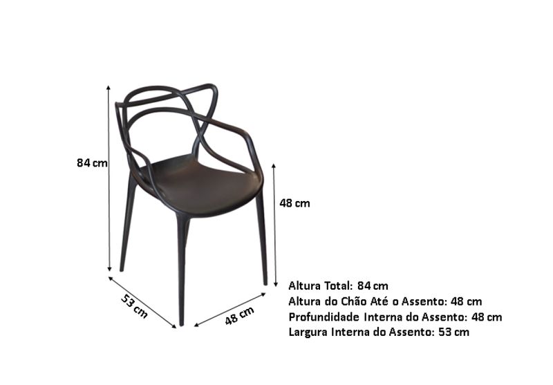 Modelo: Cadeira Allegra Masters Conhecida no mundo inteiro pelo seu design único e a forma como foi criada a cadeira Allegra Masters é uma homenagem a três cadeiras símbolo da história do design a cadeira Jacobsen de Arne Jacobsen a cadeira Saarinen de Eero Saarinen e a DSR do casal Eames. Os modelos se entrelaçam em uma combinação de curvas dando vida a uma original e cativante fusão de estilos. Material da Estrutura: Polipropileno Garantia de 3 meses por defeito de fabricação. Altura Total: 84 cm Altura do Chão Até o Assento: 48 cm Profundidade Interna do Assento: 48 cm Largura Interna do Assento: 53 cm Não Giratória Não Dobrável Não Empilhável Indicações de Uso: - Não utilizar produtos químicos e abrasivos para limpeza; - Limpar com pano umedecido e sabão neutro para melhor conservação; - Deve ser evitada exposição dos produtos ao sol pois podem apresentar pequenas mudanças em sua coloração. Observações importantes: - Produto NÃO necessita de montagem - Pode haver alguma diferença de tonalidade entre a imagem e o produto real, por conta do tratamento de imagens e a calibração de cores do seu monitor. - Ao receber a mercadoria, o cliente deve verificar as condições da embalagem, caso haja alguma avaria não assine o comprovante de recebimento.
