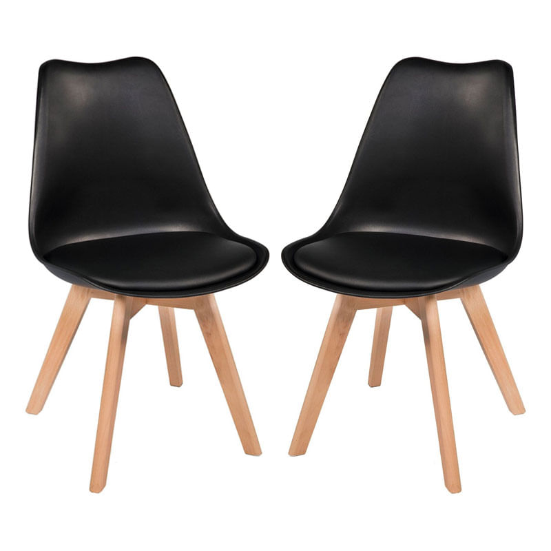 MóveisCozinhaCadeiraKit com 2 Cadeira Leda Preta - Charles Eames Wood com Almofada