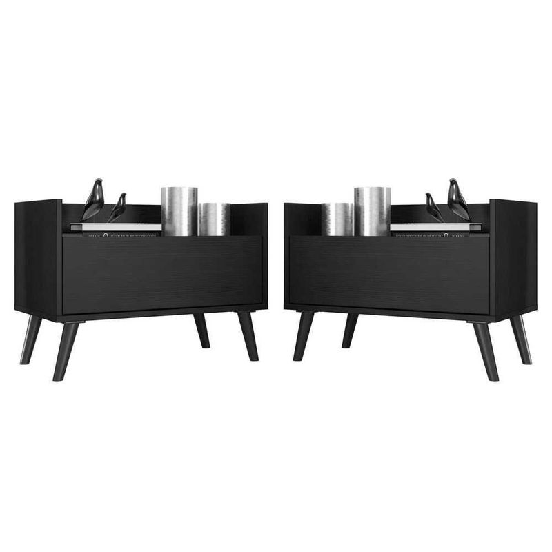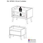 O Kit com 2 Mesas de Cabeceira 60 cm com Pés Retrô Multimóveis é uma solução prática para você deixar seu quarto mais bonito e complementar seu ambiente. Produzido em MDP com acabamento acetinado (cerca de 20% de brilho), que garante maior durabilidade e facilidade na limpeza, possui 1 gaveta com amplo espaço interno e corrediças metálicas que proporcionam mais leveza no manuseio. Os pés retrô, em polipropileno, dão um charme especial ao móvel deixando-o com um visual leve e permitindo você compor um ambiente com ar vintage e moderno ao mesmo tempo. Seu design clean permite que seja utilizado em diferentes ambientes, adaptando-se conforme sua necessidade.Conteúdo da Embalagem:2 (duas) mesas de cabeceira2 (dois) kits com 4 pés retrôDimensões do produto montado:Altura: 47cm | Largura: 60cm | Profundidade: 36cm*Você pode consultar as medidas internas na imagem técnica do produto.Disponível em 6 opções de cores:Branco Branco/Preto Branco/l Preto Texturizado Preto Texturizado/Branco Preto Texturizado/l*As cores do produto podem sofrer variações de tonalidade de acordo com as configurações do seu dispositivo.Imagem meramente ilustrativa. Decoração não acompanha o produto.O produto será entregue desmontado e não disponibilizamos o de montagem.