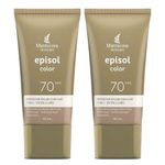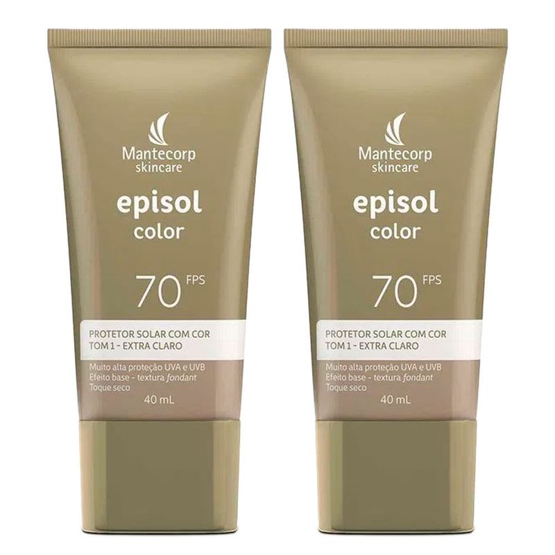 Kit com 2 Protetor Solar Episol Color Tom 1 Extra Claro FPS70 40ml cada O Protetor Solar Episol Color Tom 1 Extra Claro promove uma perfeita cobertura e uniformidade da pele com ultra proteção de luz visível, raios UVA e UVB. Sua fórmula inovadora possui um sistema que impede a formação de aglomerados, deixando a pele mais uniforme e sem manchas. Previne o envelhecimento precoce, é hipoalergênico e não obstrui os poros. Além de ser muito resistente à água, sua textura fondant tem efeito mate e toque seco. Indicado para todos os tipos de pele. Protetor solar com cor, pele extra clara tom 1.