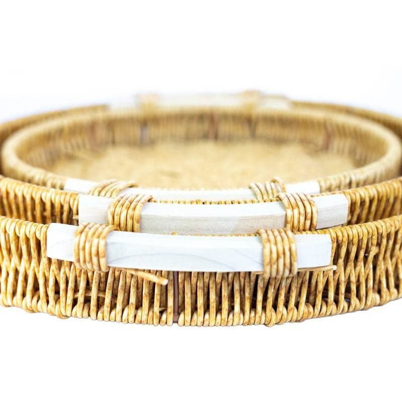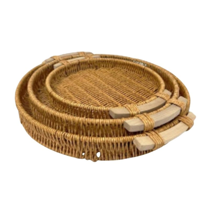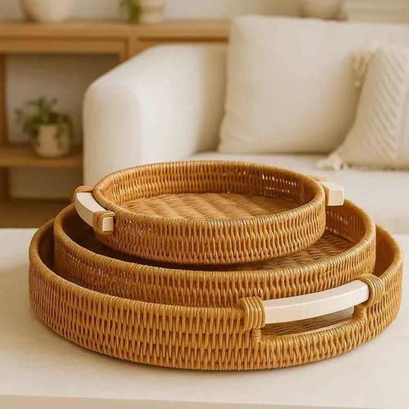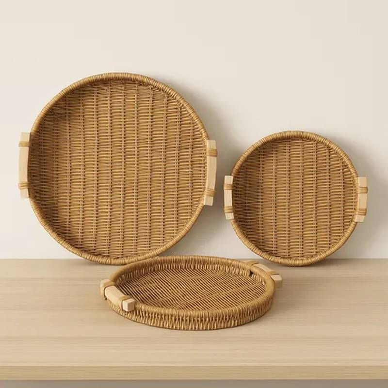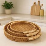 Kit com 3 Bandejas Redonda Madeira 24cm / 30cm / 35cm ===================================== Uma solução prática, versátil e elegante para quem busca aliar funcionalidade e organização em diversos ambientes da casa ou em espaços profissionais. Fabricadas com material resistente e de fácil higienização, essas bandejas são ideais para servir alimentos, transportar utensílios ou organizar objetos do cotidiano com muito mais eficiência. Seu design clean e formato redondo garantem excelente aproveitamento de espaço, além de facilitar o manuseio e a disposição sobre mesas, bancadas, prateleiras ou dentro de armários. Por serem empilháveis, também otimizam o espaço de armazenamento quando não estão em uso. Com visual neutro e acabamento uniforme, o conjunto combina com diversos estilos de decoração, sendo uma excelente escolha para quem valoriza praticidade sem abrir mão da estética. ===================================== Contém: 03 Bandejas Especificação: - Material: Plástico, Metal e Madeira - Bandeja Grande: 35cm x 4,5cm - Bandeja Média: 30cm x 4,5cm - Bandeja Pequena: 24cm x 3,5cm - Formato: Redondo - Empilhável: Sim ===================================== Devido à diferença entre monitores e iluminação diferentes, pode haver variação na tonalidade apresentada no anúncio. Medidas muito aproximadas.