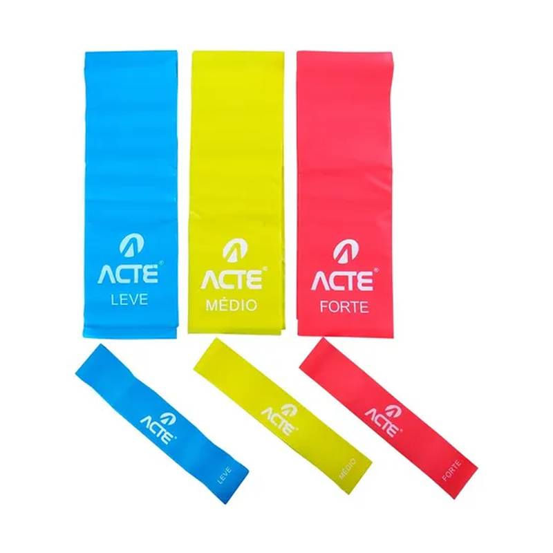 Kit com 3 Mini Band + 3 Faixas Elásticas Leve Médio e Forte ===================================== Solução prática e eficiente para quem busca variedade e desempenho nos treinos. Composto por 3 faixas elásticas e 3 mini bands, oferece três níveis de resistência (fácil, médio e difícil), permitindo personalizar a intensidade dos exercícios conforme seu progresso. Ideal para fortalecimento muscular, alongamentos, mobilidade, fisioterapia e reabilitação, o kit atende a diferentes objetivos e perfis de treino. Fabricadas em TPE de alta qualidade, as faixas são resistentes, duráveis e suportam o uso frequente sem deformações. Leves e compactas, podem ser levadas para qualquer lugar, facilitando a continuidade da sua rotina de exercícios em casa, na academia ou em viagens. As cores distintas (azul, amarelo e vermelho) facilitam a identificação da intensidade, tornando o treino mais prático e organizado. Versátil, funcional e fácil de usar, é o acessório ideal para quem deseja flexibilidade, controle e evolução contínua em seu programa de condicionamento físico. ===================================== Contém: 03 Mini Faixas 03 Faixas Especificação: - Modelo: T270-A - Marca: Acte Sports Descrição Mini Faixa: - Material: Látex - Azul: Intensidade Leve / 05cm x 26cm x 0,6mm - Amarelo: Intensidade Média / 05cm x 26cm x 0,8mm - Vermelho: Intensidade Forte / 05cm x 26cm x 01mm Descrição Faixa: - Material: TPE - Azul: Intensidade Leve / 12cm x 150cm x 0,35mm - Amarelo: Intensidade Média / 12cm x 150cm x 0,45mm - Vermelho: Intensidade Forte / 12cm x 150cm x 0,6mm ===================================== Devido à diferença entre monitores e iluminação diferentes, pode haver variação na tonalidade apresentada no anúncio. Medidas muito aproximadas.