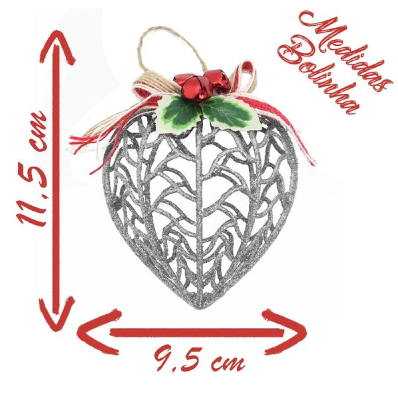 Kit Conjunto 6 Peças Decoração Enfeite Bola Coração Árvore Natal Prata Glitter Natalina 11,5cm - O Natal é tempo de celebrar o amor, comemorar a vida com novas esperanças, novos sonhos e também é a hora de deixar a casa mais bonita para receber a família nesta data tão importante. Você poderá realizar um Natal com toque de charme e bom gosto que contagiará seus convidados com o espírito natalino, deixando a sua casa decorada de uma forma diferente e apropriada para a data mais esperada do ano. Contém: 6 Peças Características Gerais do Produto: • Material: Plástico • Cor: Prata Garantia: • Garantia de fábrica - 1 Mês