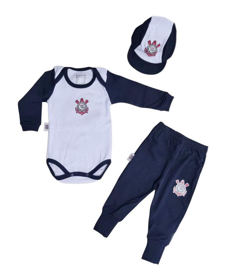 Kit Conjunto Corinthians Body Calça e Boné Oficial O Kit Conjunto Revedor foi desenvolvido para os pequenos que são torcedores desde o berço. Com esse conjunto a nova geração de campeões fica devidamente fardada com as cores do seu time de coração. Garanta o futuro das arquibancadas e vista os mini torcedores com o primeiro dos muitos mantos que ainda virão. Características - Conjunto Body Manga Longa, Calça e Boné. - Com o brasão do time. - Tecido leve e confortável. Especificações Técnicas Material: Malha 100% algodão Idade Recomendada: Tamanho P - de 1 a 3 meses Tamanho M - de 3 a 6 meses Tamanho G - de 6 a 9 meses Conteúdo da Embalagem: 1 Body, 1 Calça e 1 Boné Recomendações de uso: Seguir corretamente as instruções de lavagem da etiqueta. Produto Oficial Licenciado.
