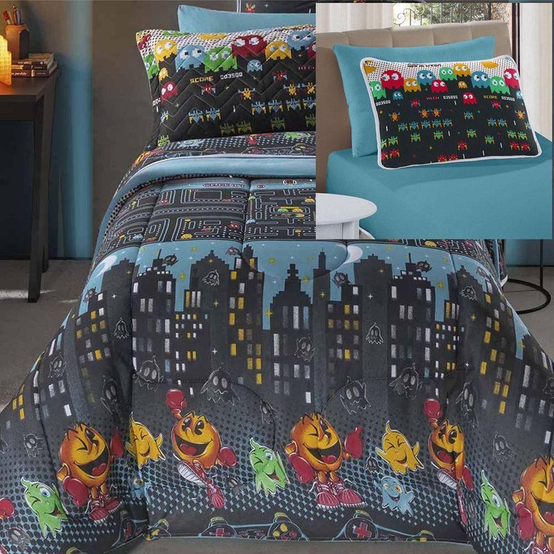 Kit Coordenado Edredom Com Lençol Solteiro Mymo - Game - 100% AlgodãoKit Coordenado Edredom com Lençol Solteiro Mymo com estampas vibrantesTransforme o seu quarto em um espaço cheio de vida e personalidade com o nosso Kit coordenado Edredom com Lençol Solteiro Mymo. Projetado com cores e estampas vibrantes, este conjunto traz alegria e frescor para o seu ambiente de descanso.O kit inclui:Edredom: Macio e confortável, o edredom é perfeito para manter você aquecido nas noites mais frias. Seu design cheio de estilo traz um toque especial ao visual do quarto.Lençol com Elástico: Com um ajuste perfeito para colchões de solteiro, este lençol com elástico garante uma noite de sono tranquila e confortável. As cores vivas e as estampas modernas completam o conjunto.Fronha: Para um acabamento impecável, a fronha que acompanha o kit também apresenta as mesmas estampas alegres, harmonizando com o edredom e o lençol.Contém na embalagem:01 Edredom Solteiro: 2,20m (Comprimento) x 1,60m (Largura)01 Lençol de Baixo com Elástico para Colchão: 1,88 (Comprimento) x 88 (Largura) x 30 (Altura)01 Fronha 70 (Comprimento) x 50cm (Largura)Composição:Edredom: Tecido Superior: 100% Malha Algodão - Enchimento: 100% Poliéster - Tecido Inferior: Malha 100% AlgodãoTecido Lençol: Malha 100% algodãoAs Cores podem mudar de acordo com o Monitor. Fique atento à descrição do produto.