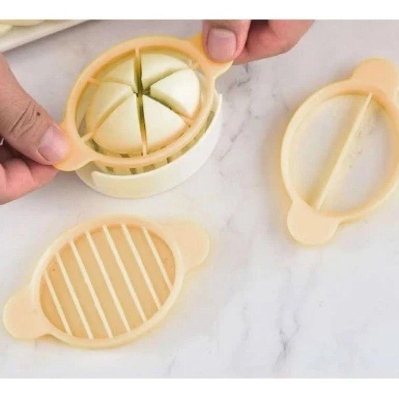 Kit Cortador De Ovos Multifuncional 3 Em 1 ClinkKit Cortador de Ovos Multifuncional 3 Em 1 Clink -O cortador de ovos da Clink é o utensílio ideal para facilitar o preparo de saladas, sanduíches, recheios e muito mais, com cortes uniformes e rápidos! Características:Prático e funcional: corta ovos cozidos em fatias finas e regulares com um único movimento.Fácil de usar: basta posicionar o ovo e pressionar a alavanca com os fios de aço ou nylon (dependendo do modelo).Compacto e leve: ocupa pouco espaço na gaveta e é fácil de transportar.Higiênico e fácil de limpar: pode ser lavado à mão ou na lava-louças. Especificações Técnicas:Dimensões: 10,5?cm (comprimento) × 6,7?cm (largura) × 3?cm (altura)Material: estrutura em plástico resistente, com fios cortantes sortida (verificar disponibilidade)? Ideal para:Ovos cozidosMini queijos maciosMorangos ou kiwis (em alguns casos)Características Gerais do Produto: