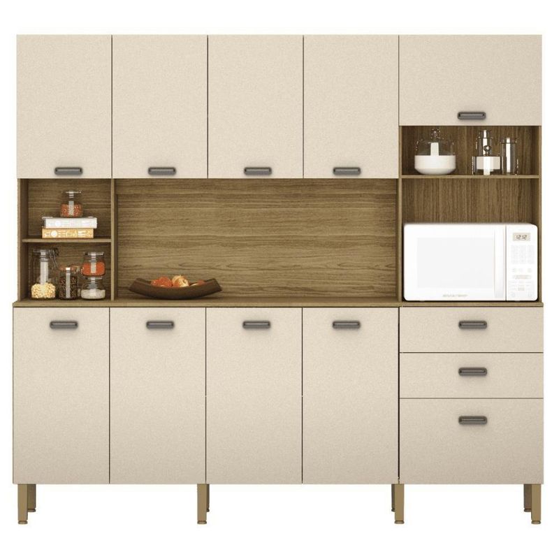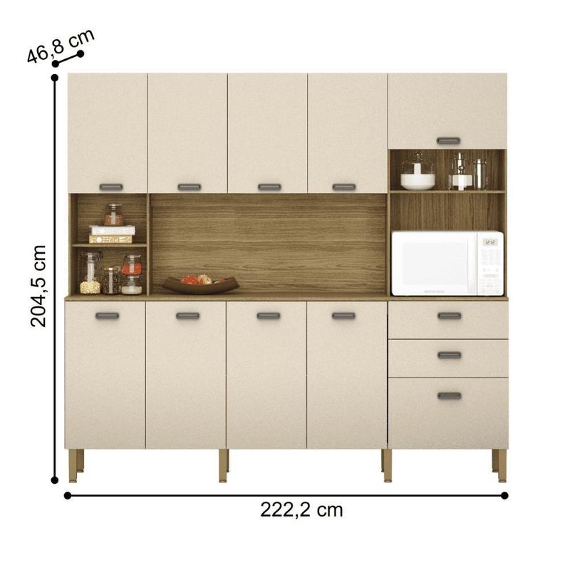 Kit Cozinha Armários E Portas Intense Freijó VanillaCom altura de 204,5 cm, largura de 222,2 cm e profundidade de 46,8 cm garantem que a cozinha Intense seja uma das maiores do mercado de Kits e cozinhas práticas. E o melhor: a instalação e a montagem são rápidas e fáceis, sem precisar furar a parede para fixação, o que faz toda a diferença para para você. Além disso, a cozinha prática Intense conta com 3 nichos decorativos que permitem personalizar a decoração da cozinha e guardar itens do dia a dia, deixando o ambiente ainda mais bonito e funcional. E não podemos esquecer do nicho para forno elétrico ou micro-ondas, com um espaço amplo para garantir a praticidade na hora de cozinhar e utilizar no dia a dia. Mas não é só isso. As duas amplas gavetas com corrediças telescópicas são um verdadeiro show à parte, proporcionando um deslize suave e sem esforço, sem contar que são super espaçosas e garantem a organização dos utensílios da cozinha.Os pés com regulagem, os puxadores em ABS com pintura inox e as portas em 15 mm de espessura garantem resistência e durabilidade, além de um design moderno e sofisticado.Informações do produto:Altura: 204,5 cmLargura: 222,2 cmComprimento: 46,8 cmPortas: Sim (10)Gavetas: Sim (2)Prateleiras: Sim (4, internas)Nichos: Sim (4)Pés: Sim (8)Cor: Freijó VanillaItens inclusos:01 ArmárioKit completo para montagem e manual de instruçõesGarantia: 3 meses.Informações Complementares:- Verificar o tamanho e detalhes do produto antes da compra.- Fotos meramente ilustrativa.- A transportadora entregará o produto no andar térreo do endereço de entrega.- Avaliar a mercadoria no ato do recebimento e recusar em caso de divergência ou avarias.- Não nos responsabilizamos pela montagem e desmontagem do produto no ato da entrega e devolução, assim como os custos gerados nestas situações.- Sugerimos a contratação de um montador profissional para a montagem do produto. Não nos responsabilizamos por avarias causadas no ato da montagem. Peso Produto Com Embalagem (Kg): 104,2 | Color: Marrom | Tipo de Cama/Cabeceira: Padrão | Largura Produto com Embalagem (cm): 75,2 | Height: 23 | Comprimento Produto com Embalagem (cm): 166,9 | REQUIRES_ASSEMBLY: Sim | Width: 75 | Material para Filtro: MDP | Length: 166 | Modelo: Intense | Num. Volumes: 3 | Altura do Produto com Embalagem (cm): 23 | Acompanha Colchão: Sem Colchão | Fabricante: Kits Paraná | Weight: 104.2 | Tonalidade (Leroy): Marrom
