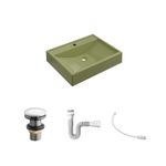 Kit Cuba Rt49 C/válvula Click 1''g + Sifão Pvc + Flexível Verde Acqua Verde AcquaSobre o ProdutoKit Cuba RT49 C/Válvula Click 1''G + Sifão Pvc + Flexível AmareloDescrição do ProdutoO Kit KTCART490W.AM.AP03 é uma combinação perfeita da Cuba de Apoio CART490W.AM com acessórios complementares, prontos para instalação no seu lavabo ou móvel de banheiro. Ele conta com 1 Cuba de Apoio Retangular RT49 50,5X40cm Amarelo + 1 Válvula P/Lavatório Click Up 1 (2,6cm) V03 Metal Cromado + 1 Sifão Pvc Universal Branco + 1 Engate Flexível Pvc Branco 40cm + 0+ 0 , todos compatíveis e prontos para instalação.Itens Inclusos:1 Cuba de Apoio + 1 Válvula de Escoamento Clik Up + 1 Sifão PVC Universal Branco + 1 Engate Flexível 40cm Informações Logísticas:Vol.01 - Comp.: 61cm - Prof.: 43cm - Alt.: 17cm - Peso Bruto: 7,6Kg Observações:Não acompanha acessórios decorativos. Imagens meramente ilustrativas.Informações Técnicas / CaracterísticasCuba de Apoio Retangular RT49 50,5X40cm Amarelo- Cor: Amarelo- Marca: Compace- Modelo: CART490- Linha: Plus- Formato: Retangular- Tipo de Cuba: Apoio- Material: Mármore Sintético- Acabamento: Hard Lacca PU- Escala de Brilho: Brilho- Possui Ladrão: Não- Possui Furação para Torneira: Sim- Diâmetro do Furo para Torneira: (32mm) - DN 32- Diâmetro do Furo para Válvula: (32mm) - DN 32 - Comprimento: 50,5cm- Largura: 40cm- Altura: 10,5cm - Peso Líq.: 6,4Kg- Recomendações de Uso, Manutenção e Limpeza: Utilize flanela seca ou pano macio, levemente umedecido com água. Evite contato com produtos químicos e abrasivos (solventes, thinner, acetona etc) e não utilize nenhum tipo de esponja de aço. Para maior brilho, recomendamos a utilização de cera automotiva n° 2.- Necessita de Montagem: Sim / Acompanha Manual de Montagem- Complexidade da Montagem: Média: pode ser montado por mais de uma pessoa e/ou necessite de maior conhecimento para montagem.- Garantia: 6 mesesVálvula P/Lavatório Click Up 1 (2,6cm) V03 Metal Cromado- Cor: Cromado- Marca: Compace- Modelo: CO1613V03- Linha: Complementos- Tipo: Click- Local: Lavatório- Acabamento: Cromado- Material: Zamak, Elastômeros e Plásticos de Engenharia.- Bitola do Cano: 1- Possui Ladrão: Não - Altura: 8cm- Diâmetro: 5,7cm - Altura Total: 9cm- Peso Líq.: 0,18Kg- Recomendações de Uso, Manutenção e Limpeza: Limpar apenas com pano macio e sabão neutro. Não usar produtos abrasivos como sapólio, palha de aço e produtos químicos.- Necessita de Montagem: Sim- Complexidade da Montagem: Média: pode ser montado por mais de uma pessoa e/ou necessite de maior conhecimento para montagem.- Garantia: 5 anosSifão Pvc Universal Branco- Cor: Branco- Marca: Compace- Modelo: SPVC- Linha: Complementos- Tipo: Flexível- Local: Multiuso- Acabamento: PVC- Material: PVC- Bitola do Cano: Universal - Temperatura da Água Indicada: Mín.: 0° Celsius / Máx.: 90° Celsius - Comprimento: 29cm - Diâmetro: 5cm- Comprimento Total: 71cm - Peso Líq.: 0,1Kg- Recomendações de Uso, Manutenção e Limpeza: Limpar apenas com pano macio e sabão neutro. Não usar produtos abrasivos como sapólio, palha de aço e produtos químicos.- Necessita de Montagem: Sim- Complexidade da Montagem: Média: pode ser montado por mais de uma pessoa e/ou necessite de maior conhecimento para montagem.- Garantia: 01 anoEngate Flexível Pvc Branco 40cm- Cor: Branco- Marca: Compace- Modelo: FLEX- Linha: Complementos- Tipo: Flexível- Local: Multiuso- Acabamento: PVC- Material: PVC- Bitola do Cano: Universal - Pressão Indicada: 40 m.c.a.- Temperatura da Água Indicada: Fria - Comprimento: 40cm - Diâmetro: 2cm - Peso Líq.: 0,08Kg- Recomendações de Uso, Manutenção e Limpeza: Limpar apenas com pano macio e sabão neutro. Não usar produtos abrasivos como sapólio, palha de aço e produtos químicos.- Necessita de Montagem: Sim- Complexidade da Montagem: Média: pode ser montado por mais de uma pessoa e/ou necessite de maior conhecimento para montagem.- Garantia: 01 ano Formato: Retangular | Tipo de Cuba: Apoio | Material: Mármore Sintético | Acabamento: Hard Lacca PU Fosco | Escala de Brilho: Fosco | Possui Furação para Torneira: Sim | Diâmetro do Furo para Torneira: (32mm) - DN 32 | Diâmetro do Furo para Válvula: (32mm) - DN 32 | Itens Inclusos: 1 Cuba de Apoio + 1 Válvula de Escoamento Clik Up + 1 Sifão PVC Universal Branco + 1 Engate Flexível 40cm | Limite de unidades por venda: É possível comprar até 1 unidade por venda. | Quantidade máxima de pedido: 1 | Baterias são necessárias?: false Cor: Verde Acqua