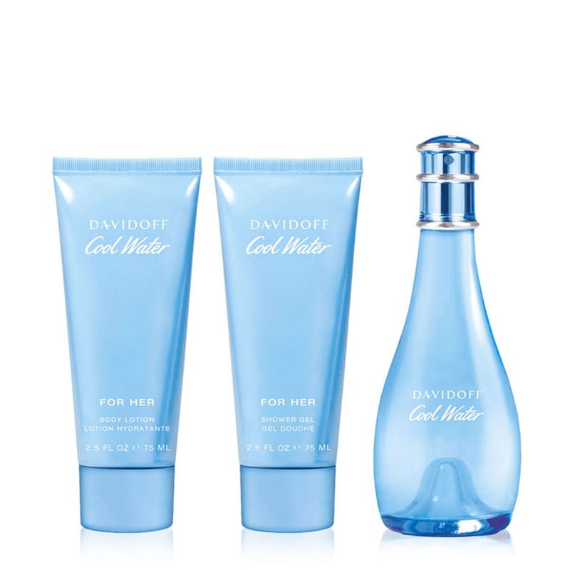 Kit Davidoff Cool Water Woman Eau de Toilette Feminino 100ml + Body Lotion 75ml + Shower Gel 75ml Descrição do Produto: O Kit Davidoff Cool Water Woman é uma combinação perfeita para a mulher moderna que busca frescor e feminilidade em sua rotina de cuidados. Inclui um Eau de Toilette 100ml, um Body Lotion 75ml e um Shower Gel 75ml, todos inspirados na essência revigorante da água. Este perfume floral aquático captura a beleza natural do oceano, com notas suculentas e frescas que proporcionam uma experiência sensorial única. Ideal para o dia a dia ou ocasiões especiais, o kit realça a sensualidade serena e a elegância atemporal, transformando o cuidado pessoal em um momento de sofisticação e bem-estar. Características: Marca: Davidoff Linha: Cool Water Woman Categoria: Perfume e Cuidados Pessoais Versão: Classic Quantidade: Eau de Toilette 100ml, Body Lotion 75ml, Shower Gel 75ml Benefícios: Fragrância refrescante, hidratação, limpeza suave, fixação moderada Ingredientes Principais: Abacaxi, melão, groselha preta, lírio-do-vale, jasmim, sândalo, pêssego Modo de Aplicação: Shower Gel (75ml): Aplique na pele úmida durante o banho, massageie até formar espuma e enxágue. Body Lotion (75ml): Aplique na pele limpa, massageando suavemente até completa absorção. Eau de Toilette (100ml): Borrife a 15-20 cm da pele nos pontos de pulsação, como pulsos e pescoço, para melhor projeção. Especificações do Produto: Família Olfativa: Floral Aquático Gênero: Feminino Concentração: Eau de Toilette Ocasião: Dia a dia, eventos casuais, climas quentes Nome do Produto: Davidoff Cool Water Woman Eau de Toilette Linha: Cool Water Woman Versão: Classic Notas de Topo: Abacaxi, melão, groselha preta, cítricos Notas de Coração: Lírio-do-vale, jasmim, rosa de maio Notas de Fundo: Sândalo, pêssego, amora Benefícios do Produto: Eficácia: O perfume oferece frescor aquático com toque floral, enquanto o shower gel limpa suavemente e o body lotion hidrata, prolongando a fragrância na pele. Durabilidade: O Eau de Toilette tem fixação de 4-6 horas, com projeção moderada; o body lotion e shower gel complementam, mantendo a hidratação e o aroma por algumas horas adicionais. Versatilidade: Perfeito para climas quentes e uso diário, adaptando-se a ocasiões casuais ou momentos de verão, com a praticidade de um kit completo. Design ou Praticidade: O frasco de perfume de 100ml tem design elegante em tons de azul, refletindo o frescor do oceano, enquanto as embalagens de 75ml são práticas para uso ou transporte. O Kit Davidoff Cool Water Woman Eau de Toilette 100ml + Body Lotion 75ml + Shower Gel 75ml é a escolha ideal para quem busca uma experiência olfativa refrescante e completa. Com sua fragrância floral aquática e produtos complementares, ele garante frescor, hidratação e sofisticação, perfeito para a mulher contemporânea. Eleve sua rotina de cuidados com este kit que celebra a beleza natural e a sensualidade serena.