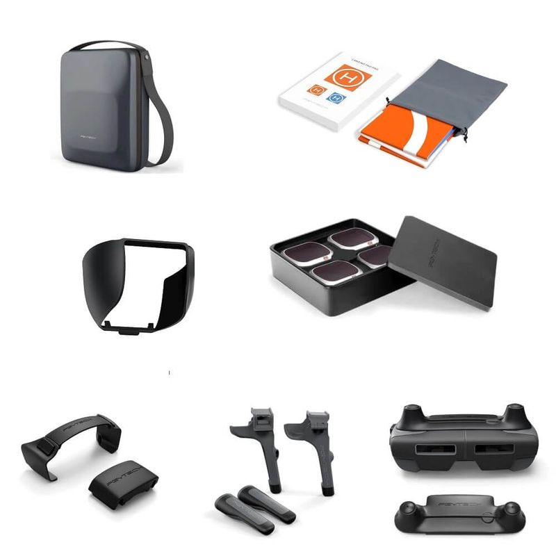 O combo de acessórios para Mavic 2 Pro é composto por 7 itens selecionados especialmente para que você possa aproveitar ao máximo seu equipamento, com qualidade, proteção e segurança, deixando-o pronto para qualquer aventua! O kit é composto por: protetor de stick do controle remoto, protetor e trava das hélices, protetor de sol para o gimbal, extensores de trem de pouso, case de transporte, heliponto de 50cm e um conjunto de 4 filtros de densidade neutra (ND8/16/32/64).- Protetor de sol para lente (Lens Hood): protege seu equipamento dos raios solares e outras fontes de luz, evitando o excesso de brilho na lente da câmera e melhorando a qualidade das fotos e vídeos aéreos. Além disso, também evita arranhões e quebra, especialmente durante o transporte.- Protetor de stick do controle remoto: é um acessório fabricado em material leve e resistente, com design discreto e elegante, que se encaixa na superfície do controle remoto e oferece proteção ao controlador joystick e tela display contra danos durante o transporte. Além disso, possui fácil montagem e desmontagem. - Extensores de trem de pouso: deixa seu equipamento mais elevado (3,5cm), evitando que ele encoste o chão nos momentos de pouso ou decolagem, bem como o gimbal/câmera, principalmente em terrenos irregulares. - Protetor e trava de hélices: evita possíveis danos ao seu equipamento durante o transporte ou armazenagem, seja numa case ou em uma mochila. Feito com materiais flexíveis de excelente qualidade, ele é pequeno e requintado, sendo muito fácil de instalar ou remover. - Heliponto: com dimensões de 50x50cm, ideal para destacar a localização de pouso para os Drones, além de proteger a câmera e as hélices de grama, galhos, areia e cascalhos durante pousos e decolagens. O Pgytech Landing Pad Pro pode ser usado em ambos os lados, sendo um na cor azul e o outro na cor laranja. A plataforma possui design dobrável, fácil de montar e transportar, é fabricado em Poliuretano (PU), impermeável, resistente a mofo e raios UV.- Case de transporte para drone: estojo rígido feito de nylon e plástico EVA, com interior moldado em compartimentos individuais para armazenar o Drone e acessórios. Os compartimentos desta maleta são construídos para caber e proteger seu drone, controle remoto, três baterias (a do drone + 2 extras), cabos, hub de carregamento, carregador de baterias, protetores de hélice e até mesmo um tablet de 7,9 polegadas (para armazenar o tablet é preciso remover os sticks do controle remoto). Uma aba de tecido macia separa os itens e protege contra arranhões, e as tiras de amarração ajudam a evitar que o seu equipamento se mova no transporte. - Kit filtros ND (Advanced): composto por 4 filtros de densidade neutra (ND8 / ND16 / ND32 / ND64), que oferecem a capacidade de gerenciar manualmente a exposição, reduzindo a quantidade de luz que entra na lente da câmera. Isso permite fotografar sob condições de iluminação intensa e melhorar os resultados de imagem do seu Drone. Os filtros Pgytech HD-ND (Advanced) utilizam vidro óptico altamente transparente e uniforme, além de vários processos de polimento e moagem, e a tecnologia de revestimento multicamadas IAD para garantir o mais alto desempenho e a qualidade de imagem de alta definição.Características Gerais:Marca: PgytechModelo: P-HA-056 (Professional)Qtde de acessórios: 07Compatibilidade:Todos os acessórios são compatíveis com o Drone DJI Mavic 2 Pro.Garantia:Garantia de 90 dias para defeito de fabricação.Itens inclusos:1 x Protetor e trava das hélices1 x Extensor de trem de pouso1 x Protetor de sol para o gimbal1 x Protetor stick controle remoto1 x Case de transporte1 x Heliponto1 x Conjunto de filtrosObservações:Não acompanha Drone e controle remoto.Imagens meramente ilustrativas.