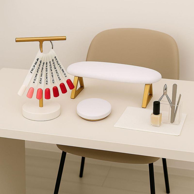 Kit De Apoio Para Mãos E Cotovelo + Expositor Para Manicure DouradoKit de Apoio para Mãos e Cotovelo + Expositor para Manicure Dourado -Kit de Apoio para Mãos e Cotovelo + Expositor para ManicureKit completo para conforto e organização no atendimento de manicure, ideal para profissionais e entusiastas.Inclui:Apoio ergonômico para mãos e punhosApoio acolchoado para cotoveloExpositor compacto para paleta de cores de esmaltesDimensões:Apoio para mãos e punho: 15x40x15 cmApoio de cotovelo: 3x12,5x12,5 cmExpositor paleta de cor: 26x20x15 cmGarantia:3 meses contra defeitos de fabricação.Características Gerais do Produto: - Altura: 20 cm - Garantia: Garantia de fábrica 3 meses - Largura: 40 cm - Marca: Venturi - Material Estrutura: Metalon - Montagem Necessária?: Não - Peso: 1 kg - Profundidade: 20 cm - Tipo de Instalação: De SobreporAcompanha o produto: - 1 Kit de Apoio para Mãos e Cotovelo + Expositor Garantia: - 90 dias após o recebimento do produto