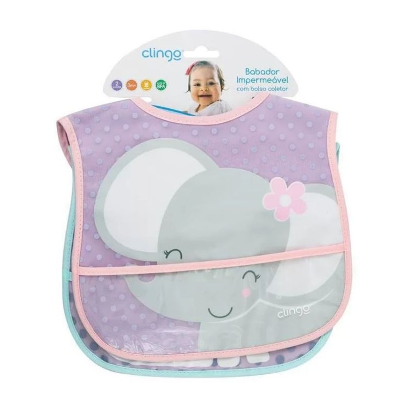 "Kit de Babador Impermeável Elefante e Gato (2 unid) - Clingo O Kit Babador Impermeável com Bolso Coletor da Clingo com 2 unidades evita que líquidos passe por ele e molhe o bebê. Com fechamento no pescoço através de velcro e lindas estampas. Mede aproximadamente 32 x 24 cm. Composição: - Frente:100% polietileno vinil acetato - Forro: 65% algodão e 35% poliester Conteúdo da embalagem: - 02 Babadores Impermeáveis com Bolso Coletor da Clingo"