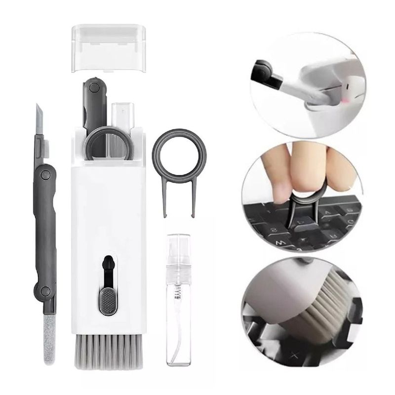 Kit de Escovas de Limpeza Multiuso ===================================== A solução perfeita para facilitar a limpeza de diversos ambientes e superfícies. Composto por escovas projetadas para alcançar até os cantos mais difíceis, este conjunto combina eficiência e durabilidade, tornando as tarefas domésticas muito mais práticas e rápidas. Inclui uma esponja de flocagem para limpar o interior da caixa de carregamento de fones de ouvido, uma escova de alta densidade para saídas de som e uma ponta de caneta para remover poeira teimosa, equipado com cerdas de Nylon e um prático puxador de teclado, este kit atende a uma variedade de necessidades de limpeza Conjunto dividido em cabeça dupla com máquina de limpeza de computador, fornecendo cerdas de nylon, esponja de flocagem, escova de alta densidade, ponta de caneta e puxador de teclado para atender a diversas necessidades de limpeza. ===================================== Contém: 01 Kit de Escovas Especificações: - Material: Plástico e Fibras Sintéticas - Medida: 09cm x 03cm - Peso: 40 gramas - Cor: Branco ===================================== Devido à diferença entre monitores e iluminação diferentes, pode haver variação na tonalidade apresentada no anúncio. Medidas muito aproximadas.