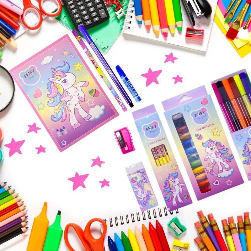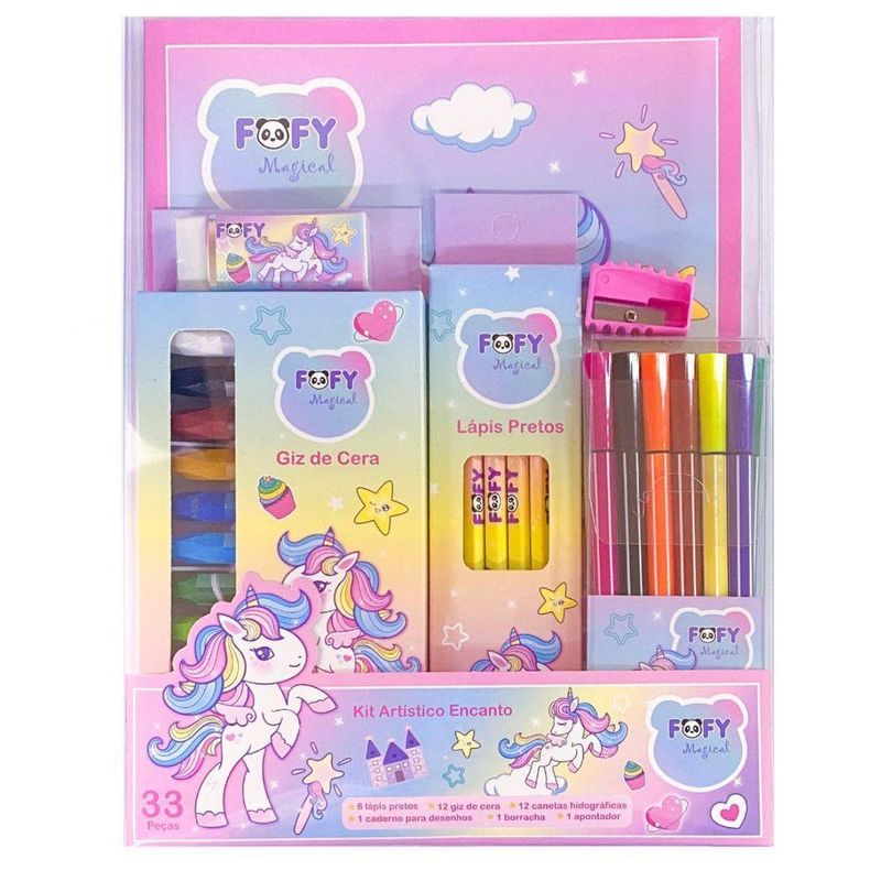 Kit Desenho Artístico Infantil Encanto Com 33 Peças FofyKIT PAPELARIA ARTÍSTICO ENCANTO - FOFYVocê já imaginou ter todas as ferramentas artísticas que precisa em um só lugar? O Kit Papelaria Artístico Encanto da Fofy é exatamente o que você precisa para liberar sua criatividade! Este kit inclui lápis, giz de cera, canetas hidrográficas, apontador sem depósito, borracha e um caderno para desenhos. Todos os itens foram selecionados com carinho para garantir a melhor experiência artística.Benefícios:Versatilidade: Ferramentas variadas para diversas técnicas de desenho e coloração.Qualidade: Materiais de alta durabilidade e desempenho, proporcionando excelentes resultados.Praticidade: Tudo o que você precisa em um único kit para facilitar o seu processo criativo.Inspiração: Perfeito para artistas de todas as idades e níveis, do iniciante ao profissional.O Kit Inclui:6 Lápis Pretos: Perfeitos para esboços e detalhes.12 Giz de Cera: Cores vibrantes para adicionar vida aos seus desenhos.12 Canetas Hidrográficas: Para traços precisos e coloridos.1 Apontador sem Depósito: Mantenha seus lápis sempre afiados.1 Borracha: Para correções sem deixar vestígios.1 Caderno para Desenhos: Com 12 folhas lisas brancas, pronto para receber sua criatividade.Tem alguma dúvida? Nossa equipe está pronta para ajudar no campo de perguntas ou via chat.