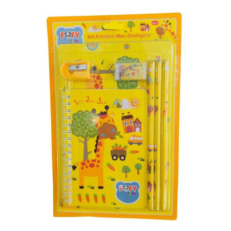 Kit Desenho Artístico Infantil Meu Zoologico 7 Peças FofyKIT DE PAPELARIA MEU ZOOLÓGICO 7 PCS - FOFYDesperte a criatividade e divirta-se com o Kit Artístico Meu Zoológico da FOFY! Ideal para aqueles que adoram criar e colorir, este kit oferece uma variedade de itens que estimulam a imaginação e promovem o desenvolvimento artístico.O Kit Inclui:3 Lápis Pretos: Fabricados em madeira com pigmentos de alta qualidade, perfeitos para esboços e desenhos.1 Apontador: Em resina termoplástica com lâmina de aço inox, garantindo precisão.1 Borracha: Composta de borracha natural e sintética, ideal para corrigir e ajustar seus desenhos.1 Caderno para Desenhos: Com capa e folhas de papel de alta qualidade, perfeito para criar suas obras de arte.1 Quebra-Cabeça em Papel: Um desafio divertido que estimula a coordenação motora e o raciocínio lógico.Características do Produto:Composição:Lápis Preto: Madeira, pigmentos, aglutinantes, carga inerte e ceras.Borracha: Borracha natural e sintética.Apontador: Resina termoplástica com lâmina em aço inox.Caderno e Quebra-Cabeça: Papel.Cuidados:Armazenar em local seco e livre de umidade.Não expor a temperaturas elevadas.Tem alguma dúvida? Nossa equipe está pronta para ajudar no campo de perguntas ou via chat.