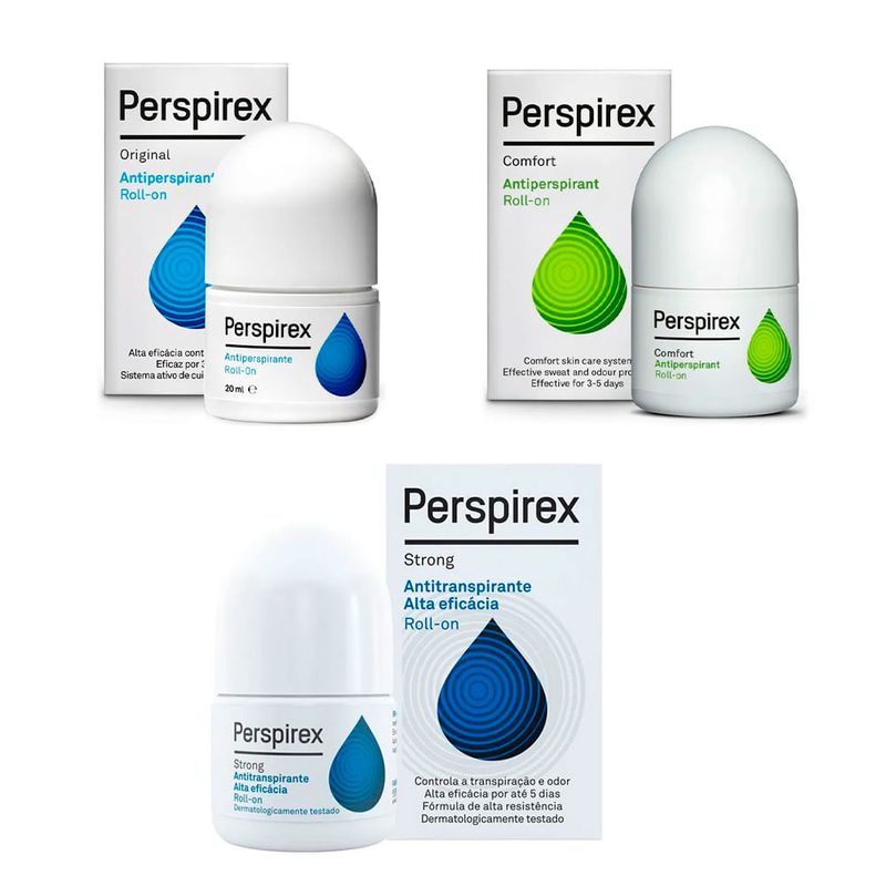 Desodorante Perspirex Rollon Antiperspirante 20ml O Desodorante Perspirex Rollon Antiperspirante foi desenvolvido para ser mais eficaz que os desodorantes comuns. O antiperspirante previne a formação de bactérias, eliminando o suor e o odor. A sua composição usa uma fórmula refinada que reduz a irritação geralmente associada a outros antiperspirantes à base de cloreto de alumínio. Sua fórmula sem perfume e livre de manchas é clinicamente testada para fornecer proteção duradoura contra suor e odor. Modo de uso: Aplique o Desodorante Perspirex Rollon Antiperspirante com quatro movimentos: dois para cima e dois para baixo no centro da axila.
