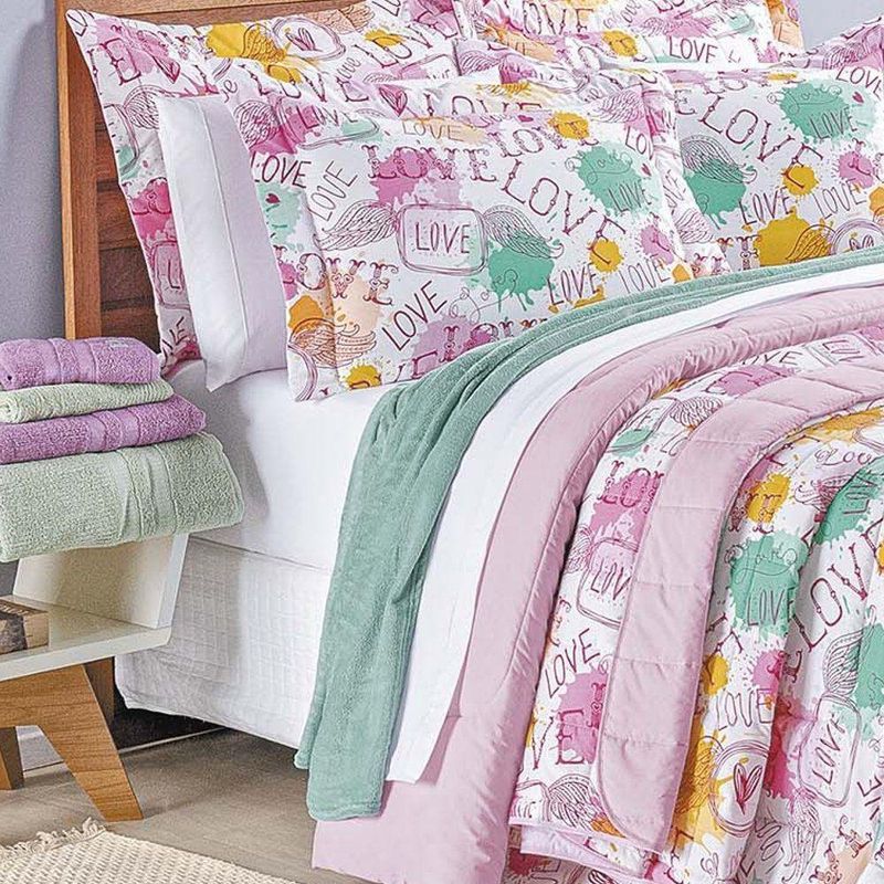 ColchõesAcessórios para CamaEdredomKit Edredom Amore Casal Queen 3 Peças Percal 200 Fios 100% Algodão - Estampa Amore
