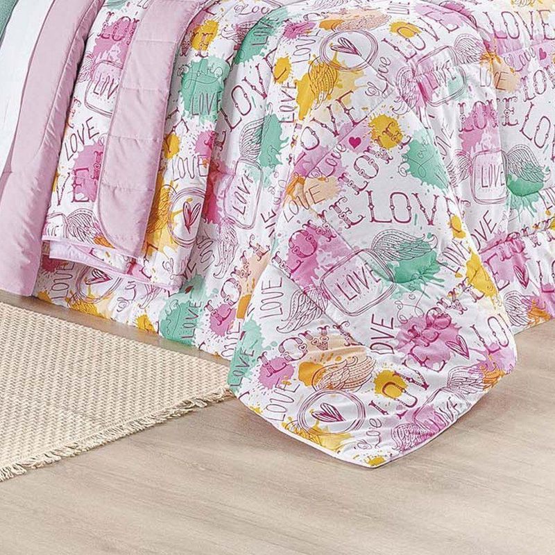 Kit Edredom Amore Casal Queen 3 Peças Percal 200 Fios 100% Algodão - Estampa Amore