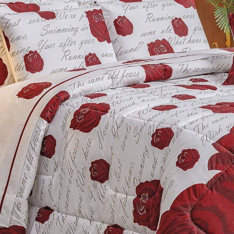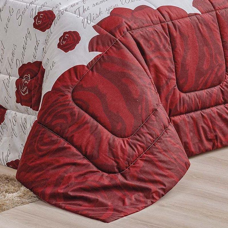Kit Edredom Craft Casal Padrão Dupla Face 5 Peças Percal 200 Fios 100% Algodão - Estampa RosesO Kit Edredom Craft Casal Padrão é a escolha ideal para quem busca o máximo de sofisticação aliada ao conforto superior das fibras naturais. Confeccionado com tecido superior em Percal 200 Fios 100% Algodão, este conjunto oferece um toque extra macio e acetinado, enquanto seu enchimento de manta alta garante o volume e o aconchego característicos de um edredom premium. Com estampas exclusivas e acabamento de alta qualidade, ele transforma o dormitório em um ambiente de puro luxo e bem-estar.Por que escolher este produto?- Qualidade Nobre: Tecido superior em Percal 200 Fios 100% Algodão para um toque de extrema suavidade.- Conforto de Edredom: Enchimento de manta alta que proporciona maior volume e proteção térmica.- Respirabilidade: Base em algodão que permite a ventilação do tecido, ideal para noites de sono revigorantes.Produto composto por (Total 05 Peças):- 01 Edredom Padrão 2,40m x 2,20m- 02 Porta Travesseiros 80cm x 60cm- 02 Refis de Travesseiros 75cm x 55cmEspecificações Técnicas:Edredom:- Tecido Superior (Estampado): Percal 200 FIOS - 100% Algodão- Tecido Inferior (Liso): Percal 120 FIOS - 100% Algodão- Enchimento: 100% PoliésterPorta Travesseiro Estampado:- Tecido: Percal 200 FIOS - 100% AlgodãoRefil Travesseiro:- Tecido: 100% Polipropileno- Enchimento: 100% Poliéster- Estampa: 241 Roses