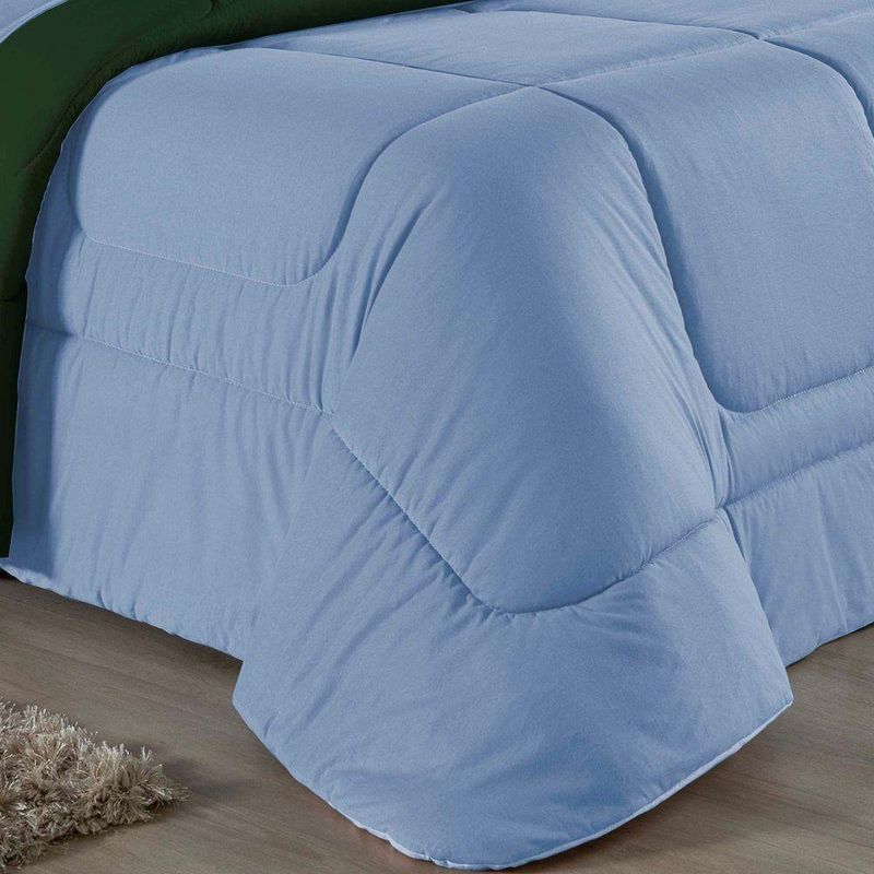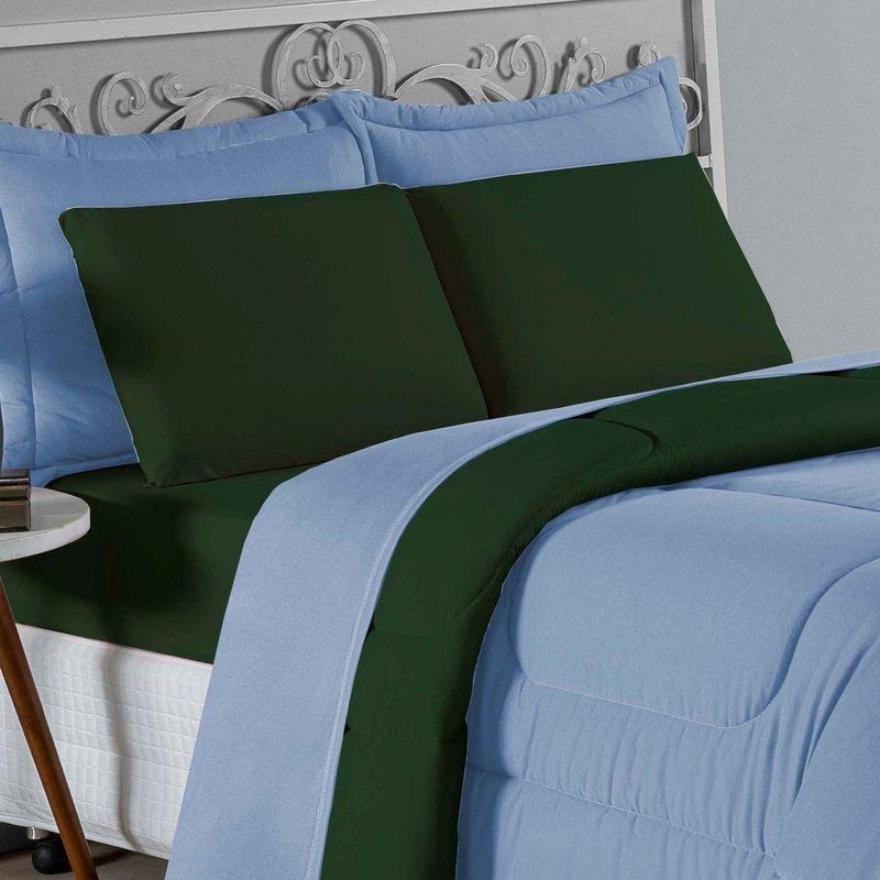 Kit Edredom Dupla Face + Jogo De Lençol Casal Nobre 7 Peças Malha 100% Algodão - Azul-bebê / Verde-bandeiraVista sua cama com elegância total e conforto absoluto com o Kit Cama Completa Casal Nobre 7 Peças. A solução definitiva para quem busca um enxoval completo, coordenado e com a maciez irresistível da malha de algodão.Por que este Kit é uma ótima escolha?- Jogo Completo 7 Peças: Inclui edredom, porta travesseiros decorativos e o jogo de cama completo (com lençol de cima e de baixo), oferecendo a experiência completa de conforto.- Malha Premium: Confeccionado em 100% Algodão Fio 30/1 Penteado, garantindo um toque suave, natural e livre de bolinhas.- Versatilidade na Decoração: O edredom dupla face permite variar o visual, enquanto o lençol de cima com vira adiciona charme à cama posta.- Aconchego e Praticidade: Une o aquecimento do edredom à facilidade do lençol com elástico, perfeito para o dia a dia.Produto composto por (Total 07 Peças):Do Kit Edredom (03 Peças):01 Edredom Casal Dupla Face: 2,00m x 2,20m02 Porta Travesseiros Matelados: 50cm x 70cmDo Jogo de Lençol (04 Peças):01 Lençol de Cima (Virol): 2,40m x 2,20m01 Lençol de Baixo com Elástico: 1,38m x 1,98m x 30cm02 Fronhas: 70cm x 50cmComposição:Tecido (Todas as peças): Malha 100% Algodão - Fio 30/1 PenteadoEnchimento (Edredom e Porta Travesseiros): 100% Poliéster (Edredom com fibra siliconada)Forro (Apenas Porta Travesseiros): 100% Polipropileno