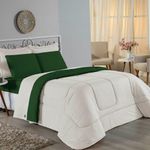 Kit Edredom Dupla Face + Jogo De Lençol Casal Nobre 7 Peças Malha 100% Algodão - Palha / Verde-bandeiraVista sua cama com elegância total e conforto absoluto com o Kit Cama Completa Casal Nobre 7 Peças. A solução definitiva para quem busca um enxoval completo, coordenado e com a maciez irresistível da malha de algodão.Por que este Kit é uma ótima escolha?- Jogo Completo 7 Peças: Inclui edredom, porta travesseiros decorativos e o jogo de cama completo (com lençol de cima e de baixo), oferecendo a experiência completa de conforto.- Malha Premium: Confeccionado em 100% Algodão Fio 30/1 Penteado, garantindo um toque suave, natural e livre de bolinhas.- Versatilidade na Decoração: O edredom dupla face permite variar o visual, enquanto o lençol de cima com vira adiciona charme à cama posta.- Aconchego e Praticidade: Une o aquecimento do edredom à facilidade do lençol com elástico, perfeito para o dia a dia.Produto composto por (Total 07 Peças):Do Kit Edredom (03 Peças):01 Edredom Casal Dupla Face: 2,00m x 2,20m02 Porta Travesseiros Matelados: 50cm x 70cmDo Jogo de Lençol (04 Peças):01 Lençol de Cima (Virol): 2,40m x 2,20m01 Lençol de Baixo com Elástico: 1,38m x 1,98m x 30cm02 Fronhas: 70cm x 50cmComposição:Tecido (Todas as peças): Malha 100% Algodão - Fio 30/1 PenteadoEnchimento (Edredom e Porta Travesseiros): 100% Poliéster (Edredom com fibra siliconada)Forro (Apenas Porta Travesseiros): 100% Polipropileno
