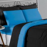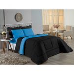 Kit Edredom Dupla Face + Jogo De Lençol Casal Nobre 7 Peças Malha 100% Algodão - Preto / TurquesaVista sua cama com elegância total e conforto absoluto com o Kit Cama Completa Casal Nobre 7 Peças. A solução definitiva para quem busca um enxoval completo, coordenado e com a maciez irresistível da malha de algodão.Por que este Kit é uma ótima escolha?- Jogo Completo 7 Peças: Inclui edredom, porta travesseiros decorativos e o jogo de cama completo (com lençol de cima e de baixo), oferecendo a experiência completa de conforto.- Malha Premium: Confeccionado em 100% Algodão Fio 30/1 Penteado, garantindo um toque suave, natural e livre de bolinhas.- Versatilidade na Decoração: O edredom dupla face permite variar o visual, enquanto o lençol de cima com vira adiciona charme à cama posta.- Aconchego e Praticidade: Une o aquecimento do edredom à facilidade do lençol com elástico, perfeito para o dia a dia.Produto composto por (Total 07 Peças):Do Kit Edredom (03 Peças):01 Edredom Casal Dupla Face: 2,00m x 2,20m02 Porta Travesseiros Matelados: 50cm x 70cmDo Jogo de Lençol (04 Peças):01 Lençol de Cima (Virol): 2,40m x 2,20m01 Lençol de Baixo com Elástico: 1,38m x 1,98m x 30cm02 Fronhas: 70cm x 50cmComposição:Tecido (Todas as peças): Malha 100% Algodão - Fio 30/1 PenteadoEnchimento (Edredom e Porta Travesseiros): 100% Poliéster (Edredom com fibra siliconada)Forro (Apenas Porta Travesseiros): 100% Polipropileno