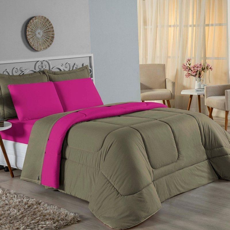 Kit Edredom Dupla Face + Jogo De Lençol Casal Viúva Nobre 6 Peças Malha 100% Algodão - Avelã / PinkRenove o quarto das crianças ou de visitas com o Kit Cama Completa Casal Viúva Nobre 6 Peças. Uma solução prática e extremamente confortável que une o aquecimento do edredom, a elegância do porta travesseiro matelado e a suavidade do jogo de lençol em malha 100% algodão. Essa medida especial foi feita para as camas cama casal viúva ou solteiro viúva.Por que este Kit é uma ótima escolha?- Conforto da Malha Penteada: Todas as peças em contato com a pele são feitas em Malha 100% Algodão Fio 30/1 Penteado, garantindo toque macio, frescor e alta durabilidade sem formar bolinhas.- Cama Posta Coordenada: O kit já vem combinando! O edredom dupla face e o porta travesseiro decoram, enquanto o lençol e a fronha vestem o colchão com perfeição.- Praticidade do Elástico: O lençol de baixo possui elástico em toda a volta, facilitando a arrumação diária e garantindo que ele não escape do colchão.- Aconchego Térmico: O edredom com enchimento siliconado oferece o peso e o calor ideais para uma noite de sono tranquila.Produto composto por (Total 06 Peças):Do Kit Edredom (03 Peças):01 Edredom Casal Viúva Dupla Face: 2,00m x 2,20m02 Porta Travesseiro Matelado: 50cm x 70cmDo Jogo de Lençol (03 Peças):01 Lençol Casal Viúva com Elástico 1,28m x 1,98m x 30cm02 Fronha: 70cm x 50cmAtenção: Este kit é composto pelo jogo de cama essencial (lençol com elástico e fronha) e não inclui o lençol de cima (sobre lençol).Composição:Tecido (Todas as peças): Malha 100% Algodão - Fio 30/1 PenteadoEnchimento (Edredom e Porta Travesseiro): 100% Poliéster (Edredom com fibra siliconada)Forro (Apenas Porta Travesseiro): 100% Polipropileno