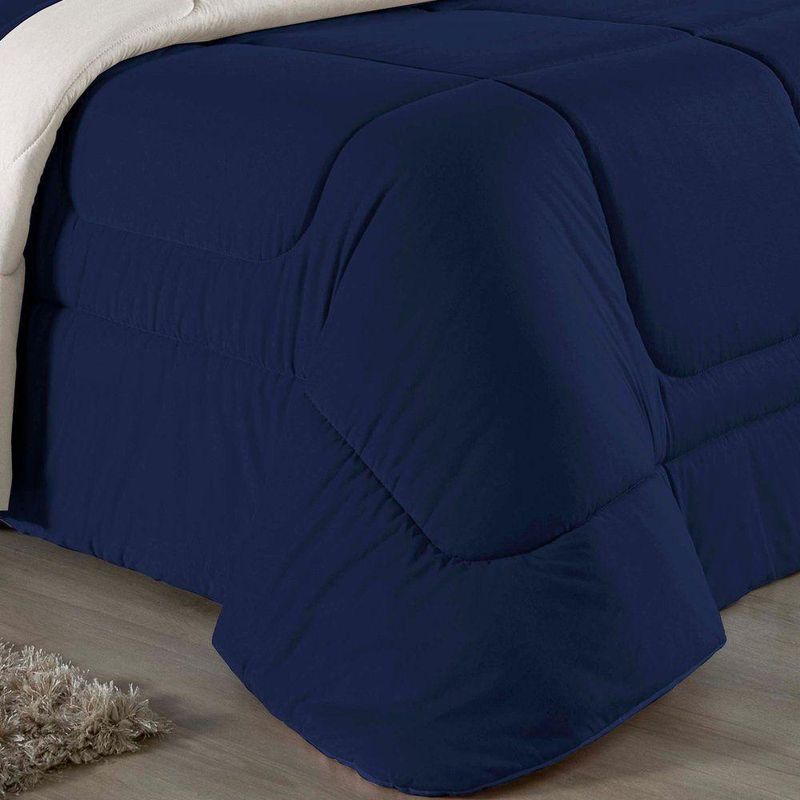 Kit Edredom Dupla Face + Jogo De Lençol Casal Viúva Nobre 6 Peças Malha 100% Algodão - Azul-marinho / PalhaRenove o quarto das crianças ou de visitas com o Kit Cama Completa Casal Viúva Nobre 6 Peças. Uma solução prática e extremamente confortável que une o aquecimento do edredom, a elegância do porta travesseiro matelado e a suavidade do jogo de lençol em malha 100% algodão. Essa medida especial foi feita para as camas cama casal viúva ou solteiro viúva.Por que este Kit é uma ótima escolha?- Conforto da Malha Penteada: Todas as peças em contato com a pele são feitas em Malha 100% Algodão Fio 30/1 Penteado, garantindo toque macio, frescor e alta durabilidade sem formar bolinhas.- Cama Posta Coordenada: O kit já vem combinando! O edredom dupla face e o porta travesseiro decoram, enquanto o lençol e a fronha vestem o colchão com perfeição.- Praticidade do Elástico: O lençol de baixo possui elástico em toda a volta, facilitando a arrumação diária e garantindo que ele não escape do colchão.- Aconchego Térmico: O edredom com enchimento siliconado oferece o peso e o calor ideais para uma noite de sono tranquila.Produto composto por (Total 06 Peças):Do Kit Edredom (03 Peças):01 Edredom Casal Viúva Dupla Face: 2,00m x 2,20m02 Porta Travesseiro Matelado: 50cm x 70cmDo Jogo de Lençol (03 Peças):01 Lençol Casal Viúva com Elástico 1,28m x 1,98m x 30cm02 Fronha: 70cm x 50cmAtenção: Este kit é composto pelo jogo de cama essencial (lençol com elástico e fronha) e não inclui o lençol de cima (sobre lençol).Composição:Tecido (Todas as peças): Malha 100% Algodão - Fio 30/1 PenteadoEnchimento (Edredom e Porta Travesseiro): 100% Poliéster (Edredom com fibra siliconada)Forro (Apenas Porta Travesseiro): 100% Polipropileno