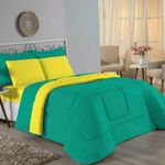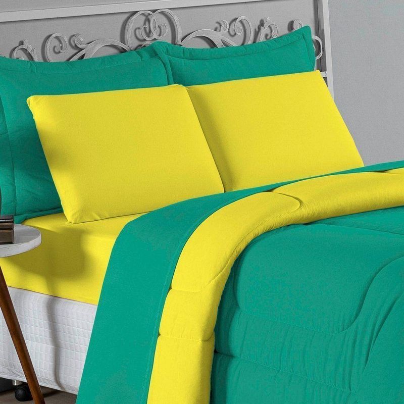 Kit Edredom Dupla Face + Jogo De Lençol Casal Viúva Nobre 6 Peças Malha 100% Algodão - Jade / AmareloRenove o quarto das crianças ou de visitas com o Kit Cama Completa Casal Viúva Nobre 6 Peças. Uma solução prática e extremamente confortável que une o aquecimento do edredom, a elegância do porta travesseiro matelado e a suavidade do jogo de lençol em malha 100% algodão. Essa medida especial foi feita para as camas cama casal viúva ou solteiro viúva.Por que este Kit é uma ótima escolha?- Conforto da Malha Penteada: Todas as peças em contato com a pele são feitas em Malha 100% Algodão Fio 30/1 Penteado, garantindo toque macio, frescor e alta durabilidade sem formar bolinhas.- Cama Posta Coordenada: O kit já vem combinando! O edredom dupla face e o porta travesseiro decoram, enquanto o lençol e a fronha vestem o colchão com perfeição.- Praticidade do Elástico: O lençol de baixo possui elástico em toda a volta, facilitando a arrumação diária e garantindo que ele não escape do colchão.- Aconchego Térmico: O edredom com enchimento siliconado oferece o peso e o calor ideais para uma noite de sono tranquila.Produto composto por (Total 06 Peças):Do Kit Edredom (03 Peças):01 Edredom Casal Viúva Dupla Face: 2,00m x 2,20m02 Porta Travesseiro Matelado: 50cm x 70cmDo Jogo de Lençol (03 Peças):01 Lençol Casal Viúva com Elástico 1,28m x 1,98m x 30cm02 Fronha: 70cm x 50cmAtenção: Este kit é composto pelo jogo de cama essencial (lençol com elástico e fronha) e não inclui o lençol de cima (sobre lençol).Composição:Tecido (Todas as peças): Malha 100% Algodão - Fio 30/1 PenteadoEnchimento (Edredom e Porta Travesseiro): 100% Poliéster (Edredom com fibra siliconada)Forro (Apenas Porta Travesseiro): 100% Polipropileno