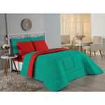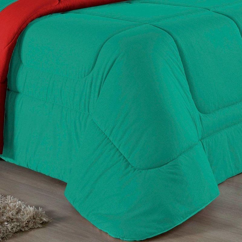 Kit Edredom Dupla Face + Jogo De Lençol Casal Viúva Nobre 6 Peças Malha 100% Algodão - Jade / VermelhoRenove o quarto das crianças ou de visitas com o Kit Cama Completa Casal Viúva Nobre 6 Peças. Uma solução prática e extremamente confortável que une o aquecimento do edredom, a elegância do porta travesseiro matelado e a suavidade do jogo de lençol em malha 100% algodão. Essa medida especial foi feita para as camas cama casal viúva ou solteiro viúva.Por que este Kit é uma ótima escolha?- Conforto da Malha Penteada: Todas as peças em contato com a pele são feitas em Malha 100% Algodão Fio 30/1 Penteado, garantindo toque macio, frescor e alta durabilidade sem formar bolinhas.- Cama Posta Coordenada: O kit já vem combinando! O edredom dupla face e o porta travesseiro decoram, enquanto o lençol e a fronha vestem o colchão com perfeição.- Praticidade do Elástico: O lençol de baixo possui elástico em toda a volta, facilitando a arrumação diária e garantindo que ele não escape do colchão.- Aconchego Térmico: O edredom com enchimento siliconado oferece o peso e o calor ideais para uma noite de sono tranquila.Produto composto por (Total 06 Peças):Do Kit Edredom (03 Peças):01 Edredom Casal Viúva Dupla Face: 2,00m x 2,20m02 Porta Travesseiro Matelado: 50cm x 70cmDo Jogo de Lençol (03 Peças):01 Lençol Casal Viúva com Elástico 1,28m x 1,98m x 30cm02 Fronha: 70cm x 50cmAtenção: Este kit é composto pelo jogo de cama essencial (lençol com elástico e fronha) e não inclui o lençol de cima (sobre lençol).Composição:Tecido (Todas as peças): Malha 100% Algodão - Fio 30/1 PenteadoEnchimento (Edredom e Porta Travesseiro): 100% Poliéster (Edredom com fibra siliconada)Forro (Apenas Porta Travesseiro): 100% Polipropileno