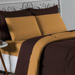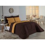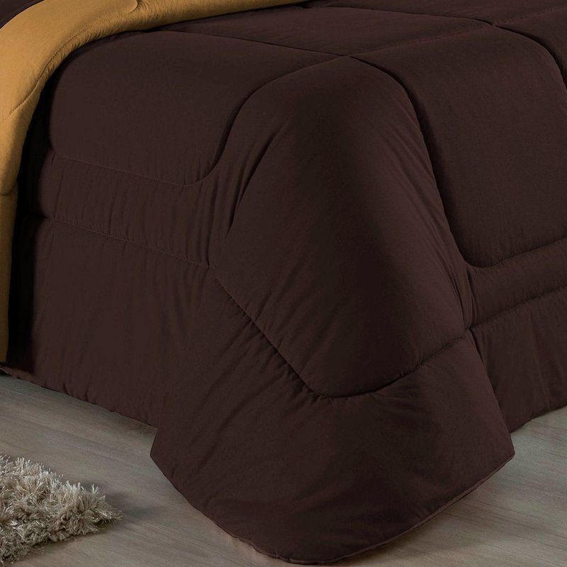 Kit Edredom Dupla Face + Jogo De Lençol Casal Viúva Nobre 6 Peças Malha 100% Algodão - Marrom / CobreRenove o quarto das crianças ou de visitas com o Kit Cama Completa Casal Viúva Nobre 6 Peças. Uma solução prática e extremamente confortável que une o aquecimento do edredom, a elegância do porta travesseiro matelado e a suavidade do jogo de lençol em malha 100% algodão. Essa medida especial foi feita para as camas cama casal viúva ou solteiro viúva.Por que este Kit é uma ótima escolha?- Conforto da Malha Penteada: Todas as peças em contato com a pele são feitas em Malha 100% Algodão Fio 30/1 Penteado, garantindo toque macio, frescor e alta durabilidade sem formar bolinhas.- Cama Posta Coordenada: O kit já vem combinando! O edredom dupla face e o porta travesseiro decoram, enquanto o lençol e a fronha vestem o colchão com perfeição.- Praticidade do Elástico: O lençol de baixo possui elástico em toda a volta, facilitando a arrumação diária e garantindo que ele não escape do colchão.- Aconchego Térmico: O edredom com enchimento siliconado oferece o peso e o calor ideais para uma noite de sono tranquila.Produto composto por (Total 06 Peças):Do Kit Edredom (03 Peças):01 Edredom Casal Viúva Dupla Face: 2,00m x 2,20m02 Porta Travesseiro Matelado: 50cm x 70cmDo Jogo de Lençol (03 Peças):01 Lençol Casal Viúva com Elástico 1,28m x 1,98m x 30cm02 Fronha: 70cm x 50cmAtenção: Este kit é composto pelo jogo de cama essencial (lençol com elástico e fronha) e não inclui o lençol de cima (sobre lençol).Composição:Tecido (Todas as peças): Malha 100% Algodão - Fio 30/1 PenteadoEnchimento (Edredom e Porta Travesseiro): 100% Poliéster (Edredom com fibra siliconada)Forro (Apenas Porta Travesseiro): 100% Polipropileno