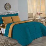 Kit Edredom Dupla Face + Jogo De Lençol Casal Viúva Nobre 6 Peças Malha 100% Algodão - Petróleo / CobreRenove o quarto das crianças ou de visitas com o Kit Cama Completa Casal Viúva Nobre 6 Peças. Uma solução prática e extremamente confortável que une o aquecimento do edredom, a elegância do porta travesseiro matelado e a suavidade do jogo de lençol em malha 100% algodão. Essa medida especial foi feita para as camas cama casal viúva ou solteiro viúva.Por que este Kit é uma ótima escolha?- Conforto da Malha Penteada: Todas as peças em contato com a pele são feitas em Malha 100% Algodão Fio 30/1 Penteado, garantindo toque macio, frescor e alta durabilidade sem formar bolinhas.- Cama Posta Coordenada: O kit já vem combinando! O edredom dupla face e o porta travesseiro decoram, enquanto o lençol e a fronha vestem o colchão com perfeição.- Praticidade do Elástico: O lençol de baixo possui elástico em toda a volta, facilitando a arrumação diária e garantindo que ele não escape do colchão.- Aconchego Térmico: O edredom com enchimento siliconado oferece o peso e o calor ideais para uma noite de sono tranquila.Produto composto por (Total 06 Peças):Do Kit Edredom (03 Peças):01 Edredom Casal Viúva Dupla Face: 2,00m x 2,20m02 Porta Travesseiro Matelado: 50cm x 70cmDo Jogo de Lençol (03 Peças):01 Lençol Casal Viúva com Elástico 1,28m x 1,98m x 30cm02 Fronha: 70cm x 50cmAtenção: Este kit é composto pelo jogo de cama essencial (lençol com elástico e fronha) e não inclui o lençol de cima (sobre lençol).Composição:Tecido (Todas as peças): Malha 100% Algodão - Fio 30/1 PenteadoEnchimento (Edredom e Porta Travesseiro): 100% Poliéster (Edredom com fibra siliconada)Forro (Apenas Porta Travesseiro): 100% Polipropileno