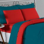 Kit Edredom Dupla Face + Jogo De Lençol Casal Viúva Nobre 6 Peças Malha 100% Algodão - Petróleo / VermelhoRenove o quarto das crianças ou de visitas com o Kit Cama Completa Casal Viúva Nobre 6 Peças. Uma solução prática e extremamente confortável que une o aquecimento do edredom, a elegância do porta travesseiro matelado e a suavidade do jogo de lençol em malha 100% algodão. Essa medida especial foi feita para as camas cama casal viúva ou solteiro viúva.Por que este Kit é uma ótima escolha?- Conforto da Malha Penteada: Todas as peças em contato com a pele são feitas em Malha 100% Algodão Fio 30/1 Penteado, garantindo toque macio, frescor e alta durabilidade sem formar bolinhas.- Cama Posta Coordenada: O kit já vem combinando! O edredom dupla face e o porta travesseiro decoram, enquanto o lençol e a fronha vestem o colchão com perfeição.- Praticidade do Elástico: O lençol de baixo possui elástico em toda a volta, facilitando a arrumação diária e garantindo que ele não escape do colchão.- Aconchego Térmico: O edredom com enchimento siliconado oferece o peso e o calor ideais para uma noite de sono tranquila.Produto composto por (Total 06 Peças):Do Kit Edredom (03 Peças):01 Edredom Casal Viúva Dupla Face: 2,00m x 2,20m02 Porta Travesseiro Matelado: 50cm x 70cmDo Jogo de Lençol (03 Peças):01 Lençol Casal Viúva com Elástico 1,28m x 1,98m x 30cm02 Fronha: 70cm x 50cmAtenção: Este kit é composto pelo jogo de cama essencial (lençol com elástico e fronha) e não inclui o lençol de cima (sobre lençol).Composição:Tecido (Todas as peças): Malha 100% Algodão - Fio 30/1 PenteadoEnchimento (Edredom e Porta Travesseiro): 100% Poliéster (Edredom com fibra siliconada)Forro (Apenas Porta Travesseiro): 100% Polipropileno