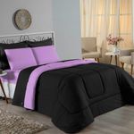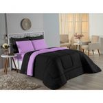 Kit Edredom Dupla Face + Jogo De Lençol Casal Viúva Nobre 6 Peças Malha 100% Algodão - Preto / LilásRenove o quarto das crianças ou de visitas com o Kit Cama Completa Casal Viúva Nobre 6 Peças. Uma solução prática e extremamente confortável que une o aquecimento do edredom, a elegância do porta travesseiro matelado e a suavidade do jogo de lençol em malha 100% algodão. Essa medida especial foi feita para as camas cama casal viúva ou solteiro viúva.Por que este Kit é uma ótima escolha?- Conforto da Malha Penteada: Todas as peças em contato com a pele são feitas em Malha 100% Algodão Fio 30/1 Penteado, garantindo toque macio, frescor e alta durabilidade sem formar bolinhas.- Cama Posta Coordenada: O kit já vem combinando! O edredom dupla face e o porta travesseiro decoram, enquanto o lençol e a fronha vestem o colchão com perfeição.- Praticidade do Elástico: O lençol de baixo possui elástico em toda a volta, facilitando a arrumação diária e garantindo que ele não escape do colchão.- Aconchego Térmico: O edredom com enchimento siliconado oferece o peso e o calor ideais para uma noite de sono tranquila.Produto composto por (Total 06 Peças):Do Kit Edredom (03 Peças):01 Edredom Casal Viúva Dupla Face: 2,00m x 2,20m02 Porta Travesseiro Matelado: 50cm x 70cmDo Jogo de Lençol (03 Peças):01 Lençol Casal Viúva com Elástico 1,28m x 1,98m x 30cm02 Fronha: 70cm x 50cmAtenção: Este kit é composto pelo jogo de cama essencial (lençol com elástico e fronha) e não inclui o lençol de cima (sobre lençol).Composição:Tecido (Todas as peças): Malha 100% Algodão - Fio 30/1 PenteadoEnchimento (Edredom e Porta Travesseiro): 100% Poliéster (Edredom com fibra siliconada)Forro (Apenas Porta Travesseiro): 100% Polipropileno