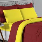 Kit Edredom Dupla Face + Jogo De Lençol Casal Viúva Nobre 6 Peças Malha 100% Algodão - Vinho / Amarelo