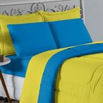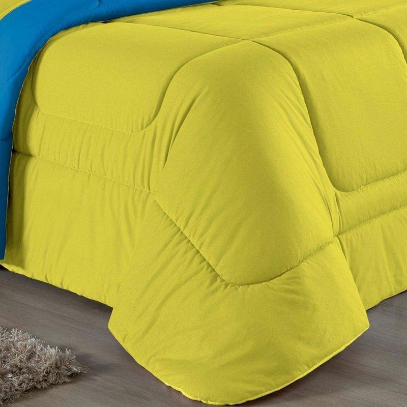 Kit Edredom Dupla Face + Jogo De Lençol Casal Viúva Nobre 7 Peças Malha 100% Algodão - Amarelo / TurquesaGaranta a experiência completa de conforto e decoração com o Kit Cama Completa Casal Viúva Nobre 7 Peças. Este conjunto premium inclui todas as peças necessárias para vestir a cama, do lençol de cima ao edredom, tudo em malha 100% algodão. Essa medida especial foi feita para as camas cama casal viúva ou solteiro viúva.Por que este Kit é uma ótima escolha?- Enxoval Completo: Diferente dos kits básicos, este modelo inclui o Lençol de Cima, ideal para dias frescos e para proteger o edredom, garantindo higiene e conforto térmico.- Qualidade da Malha: Feito em 100% Algodão Fio 30/1 Penteado, oferece toque macio, não dá bolinhas e é altamente respirável.- Decoração Impecável: O edredom dupla face e o porta travesseiro matelado decoram a cama, enquanto o jogo de lençóis completo traz a sensação de cama de hotel.- Ajuste Seguro: O lençol de baixo com elástico fixa-se firmemente ao colchão Casal viúva.Produto composto por (Total 07 Peças):Do Kit Edredom (03 Peças):01 Edredom Casal Viúva Dupla Face: 2,00m x 2,20m02 Porta Travesseiro Matelado: 50cm x 70cmDo Jogo de Lençol (04 Peças):01 Lençol de Cima (Virol) Casal 2,40m x 2,20m01 Lençol Casal Viúva com Elástico 1,28m x 1,98m x 30cm02 Fronha: 70cm x 50cmComposição:Tecido (Todas as peças): Malha 100% Algodão - Fio 30/1 PenteadoEnchimento (Edredom e Porta Travesseiro): 100% Poliéster (Edredom com fibra siliconada)Forro (Apenas Porta Travesseiro): 100% Polipropileno