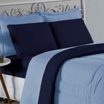 Kit Edredom Dupla Face + Jogo De Lençol Casal Viúva Nobre 7 Peças Malha 100% Algodão - Azul-bebê / Azul-marinhoGaranta a experiência completa de conforto e decoração com o Kit Cama Completa Casal Viúva Nobre 7 Peças. Este conjunto premium inclui todas as peças necessárias para vestir a cama, do lençol de cima ao edredom, tudo em malha 100% algodão. Essa medida especial foi feita para as camas cama casal viúva ou solteiro viúva.Por que este Kit é uma ótima escolha?- Enxoval Completo: Diferente dos kits básicos, este modelo inclui o Lençol de Cima, ideal para dias frescos e para proteger o edredom, garantindo higiene e conforto térmico.- Qualidade da Malha: Feito em 100% Algodão Fio 30/1 Penteado, oferece toque macio, não dá bolinhas e é altamente respirável.- Decoração Impecável: O edredom dupla face e o porta travesseiro matelado decoram a cama, enquanto o jogo de lençóis completo traz a sensação de cama de hotel.- Ajuste Seguro: O lençol de baixo com elástico fixa-se firmemente ao colchão Casal viúva.Produto composto por (Total 07 Peças):Do Kit Edredom (03 Peças):01 Edredom Casal Viúva Dupla Face: 2,00m x 2,20m02 Porta Travesseiro Matelado: 50cm x 70cmDo Jogo de Lençol (04 Peças):01 Lençol de Cima (Virol) Casal 2,40m x 2,20m01 Lençol Casal Viúva com Elástico 1,28m x 1,98m x 30cm02 Fronha: 70cm x 50cmComposição:Tecido (Todas as peças): Malha 100% Algodão - Fio 30/1 PenteadoEnchimento (Edredom e Porta Travesseiro): 100% Poliéster (Edredom com fibra siliconada)Forro (Apenas Porta Travesseiro): 100% Polipropileno