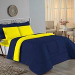 Kit Edredom Dupla Face + Jogo De Lençol Casal Viúva Nobre 7 Peças Malha 100% Algodão - Azul-marinho / AmareloGaranta a experiência completa de conforto e decoração com o Kit Cama Completa Casal Viúva Nobre 7 Peças. Este conjunto premium inclui todas as peças necessárias para vestir a cama, do lençol de cima ao edredom, tudo em malha 100% algodão. Essa medida especial foi feita para as camas cama casal viúva ou solteiro viúva.Por que este Kit é uma ótima escolha?- Enxoval Completo: Diferente dos kits básicos, este modelo inclui o Lençol de Cima, ideal para dias frescos e para proteger o edredom, garantindo higiene e conforto térmico.- Qualidade da Malha: Feito em 100% Algodão Fio 30/1 Penteado, oferece toque macio, não dá bolinhas e é altamente respirável.- Decoração Impecável: O edredom dupla face e o porta travesseiro matelado decoram a cama, enquanto o jogo de lençóis completo traz a sensação de cama de hotel.- Ajuste Seguro: O lençol de baixo com elástico fixa-se firmemente ao colchão Casal viúva.Produto composto por (Total 07 Peças):Do Kit Edredom (03 Peças):01 Edredom Casal Viúva Dupla Face: 2,00m x 2,20m02 Porta Travesseiro Matelado: 50cm x 70cmDo Jogo de Lençol (04 Peças):01 Lençol de Cima (Virol) Casal 2,40m x 2,20m01 Lençol Casal Viúva com Elástico 1,28m x 1,98m x 30cm02 Fronha: 70cm x 50cmComposição:Tecido (Todas as peças): Malha 100% Algodão - Fio 30/1 PenteadoEnchimento (Edredom e Porta Travesseiro): 100% Poliéster (Edredom com fibra siliconada)Forro (Apenas Porta Travesseiro): 100% Polipropileno