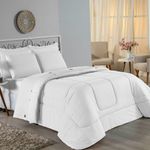 Kit Edredom Dupla Face + Jogo De Lençol Casal Viúva Nobre 7 Peças Malha 100% Algodão - BrancoGaranta a experiência completa de conforto e decoração com o Kit Cama Completa Casal Viúva Nobre 7 Peças. Este conjunto premium inclui todas as peças necessárias para vestir a cama, do lençol de cima ao edredom, tudo em malha 100% algodão. Essa medida especial foi feita para as camas cama casal viúva ou solteiro viúva.Por que este Kit é uma ótima escolha?- Enxoval Completo: Diferente dos kits básicos, este modelo inclui o Lençol de Cima, ideal para dias frescos e para proteger o edredom, garantindo higiene e conforto térmico.- Qualidade da Malha: Feito em 100% Algodão Fio 30/1 Penteado, oferece toque macio, não dá bolinhas e é altamente respirável.- Decoração Impecável: O edredom dupla face e o porta travesseiro matelado decoram a cama, enquanto o jogo de lençóis completo traz a sensação de cama de hotel.- Ajuste Seguro: O lençol de baixo com elástico fixa-se firmemente ao colchão Casal viúva.Produto composto por (Total 07 Peças):Do Kit Edredom (03 Peças):01 Edredom Casal Viúva Dupla Face: 2,00m x 2,20m02 Porta Travesseiro Matelado: 50cm x 70cmDo Jogo de Lençol (04 Peças):01 Lençol de Cima (Virol) Casal 2,40m x 2,20m01 Lençol Casal Viúva com Elástico 1,28m x 1,98m x 30cm02 Fronha: 70cm x 50cmComposição:Tecido (Todas as peças): Malha 100% Algodão - Fio 30/1 PenteadoEnchimento (Edredom e Porta Travesseiro): 100% Poliéster (Edredom com fibra siliconada)Forro (Apenas Porta Travesseiro): 100% Polipropileno