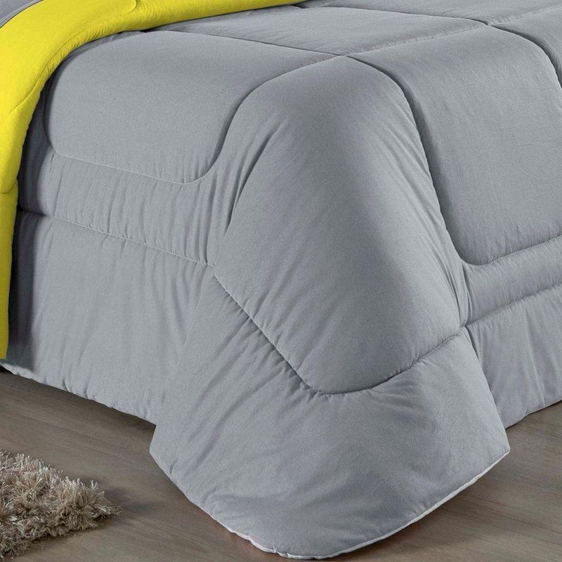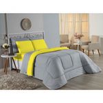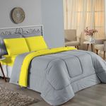 Kit Edredom Dupla Face + Jogo De Lençol Casal Viúva Nobre 7 Peças Malha 100% Algodão - Cinza / AmareloGaranta a experiência completa de conforto e decoração com o Kit Cama Completa Casal Viúva Nobre 7 Peças. Este conjunto premium inclui todas as peças necessárias para vestir a cama, do lençol de cima ao edredom, tudo em malha 100% algodão. Essa medida especial foi feita para as camas cama casal viúva ou solteiro viúva.Por que este Kit é uma ótima escolha?- Enxoval Completo: Diferente dos kits básicos, este modelo inclui o Lençol de Cima, ideal para dias frescos e para proteger o edredom, garantindo higiene e conforto térmico.- Qualidade da Malha: Feito em 100% Algodão Fio 30/1 Penteado, oferece toque macio, não dá bolinhas e é altamente respirável.- Decoração Impecável: O edredom dupla face e o porta travesseiro matelado decoram a cama, enquanto o jogo de lençóis completo traz a sensação de cama de hotel.- Ajuste Seguro: O lençol de baixo com elástico fixa-se firmemente ao colchão Casal viúva.Produto composto por (Total 07 Peças):Do Kit Edredom (03 Peças):01 Edredom Casal Viúva Dupla Face: 2,00m x 2,20m02 Porta Travesseiro Matelado: 50cm x 70cmDo Jogo de Lençol (04 Peças):01 Lençol de Cima (Virol) Casal 2,40m x 2,20m01 Lençol Casal Viúva com Elástico 1,28m x 1,98m x 30cm02 Fronha: 70cm x 50cmComposição:Tecido (Todas as peças): Malha 100% Algodão - Fio 30/1 PenteadoEnchimento (Edredom e Porta Travesseiro): 100% Poliéster (Edredom com fibra siliconada)Forro (Apenas Porta Travesseiro): 100% Polipropileno