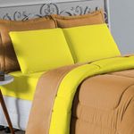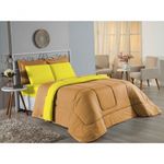 Kit Edredom Dupla Face + Jogo De Lençol Casal Viúva Nobre 7 Peças Malha 100% Algodão - Cobre / AmareloGaranta a experiência completa de conforto e decoração com o Kit Cama Completa Casal Viúva Nobre 7 Peças. Este conjunto premium inclui todas as peças necessárias para vestir a cama, do lençol de cima ao edredom, tudo em malha 100% algodão. Essa medida especial foi feita para as camas cama casal viúva ou solteiro viúva.Por que este Kit é uma ótima escolha?- Enxoval Completo: Diferente dos kits básicos, este modelo inclui o Lençol de Cima, ideal para dias frescos e para proteger o edredom, garantindo higiene e conforto térmico.- Qualidade da Malha: Feito em 100% Algodão Fio 30/1 Penteado, oferece toque macio, não dá bolinhas e é altamente respirável.- Decoração Impecável: O edredom dupla face e o porta travesseiro matelado decoram a cama, enquanto o jogo de lençóis completo traz a sensação de cama de hotel.- Ajuste Seguro: O lençol de baixo com elástico fixa-se firmemente ao colchão Casal viúva.Produto composto por (Total 07 Peças):Do Kit Edredom (03 Peças):01 Edredom Casal Viúva Dupla Face: 2,00m x 2,20m02 Porta Travesseiro Matelado: 50cm x 70cmDo Jogo de Lençol (04 Peças):01 Lençol de Cima (Virol) Casal 2,40m x 2,20m01 Lençol Casal Viúva com Elástico 1,28m x 1,98m x 30cm02 Fronha: 70cm x 50cmComposição:Tecido (Todas as peças): Malha 100% Algodão - Fio 30/1 PenteadoEnchimento (Edredom e Porta Travesseiro): 100% Poliéster (Edredom com fibra siliconada)Forro (Apenas Porta Travesseiro): 100% Polipropileno